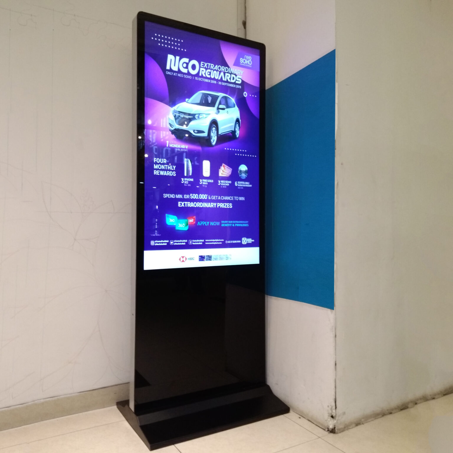 Ditempatkan di area strategis seperti mall, bandara, dan ruang publik, Digital Floorstand mampu menarik perhatian dengan tampilan yang tajam dan atraktif. Beberapa varian juga dilengkapi fitur tambahan seperti kamera, QR code, dan speaker untuk menciptakan interaksi yang lebih engaging. Lebih dari sekadar display, Digital Floorstand membantu meningkatkan daya tarik brand dan menyampaikan pesan secara lebih efektif serta berkesan.
