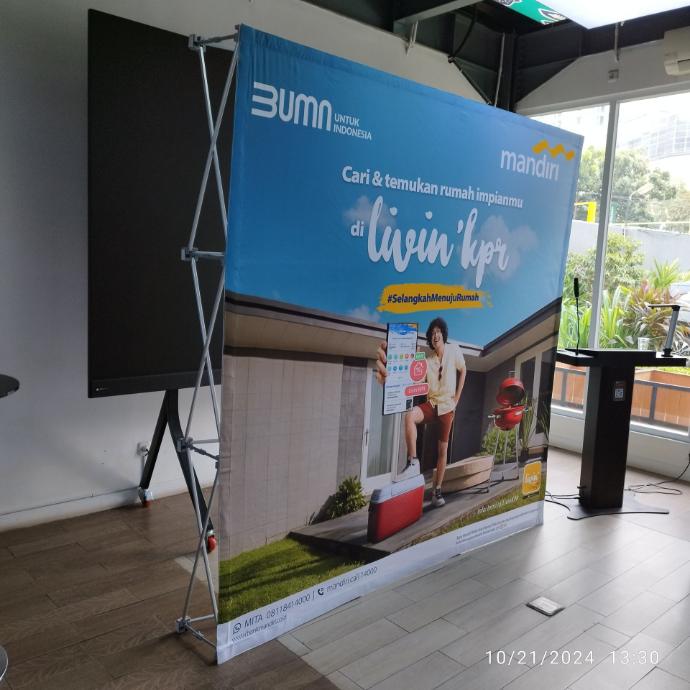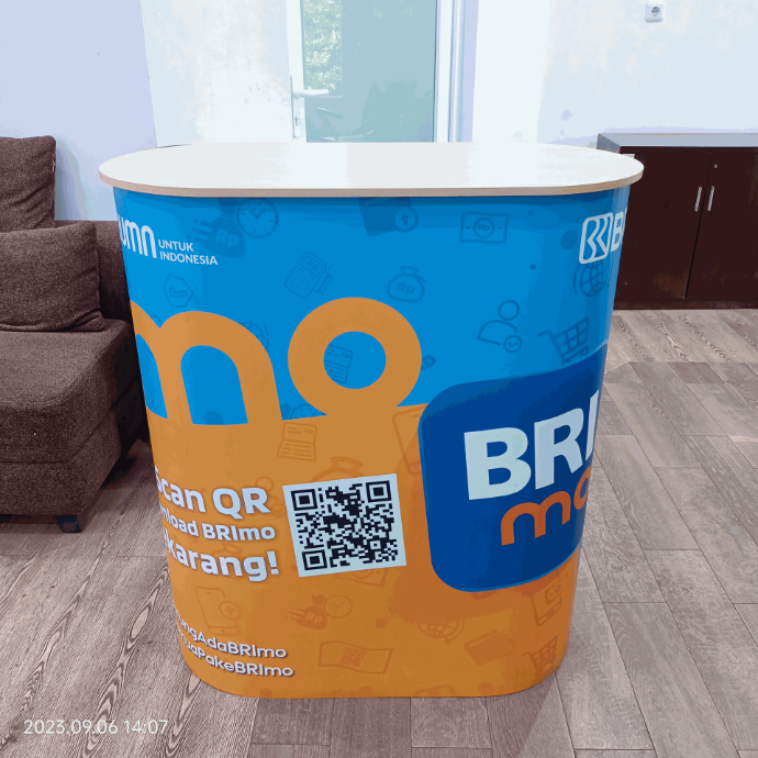 Strukturnya kuat dan kokoh untuk menahan beban, namun tetap ringkas dan mudah dibawa tanpa memakan banyak tempat, dan bahkan bisa dibawa menggunakan motor. Area untuk menampilkan juga cukup lebar, sehingga dapat memperkuat identitas brand dan menarik perhatian pengunjung. Solusi ideal untuk tim marketing yang mengutamakan efisiensi, tampilan profesional, dan fleksibilitas tanpa membutuhkan banyak crew.