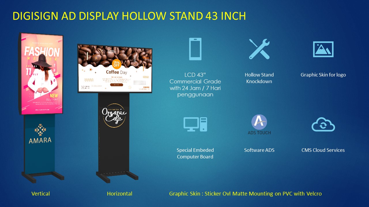 - ON / OFF Display otomatis sesuai jam buka tutup toko.