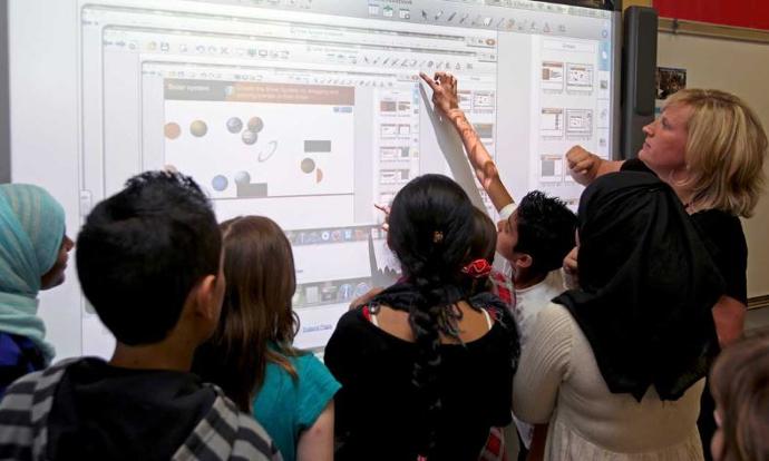 Sebelum melanjutkan artikel ini, kami perlu membahas teknologi lain dari pengembangan papan tulis yaitu dari penggunaan projector yang dapat menampilkan isi desktop ke sebuah papan besar dan pengguna dapat mengontrol isi desktop tersebut melalui stylus ataupun jari tangan. Teknologi tersebut biasa kita kenal dengan nama Interactive Projector atau Interactive Whiteboard.