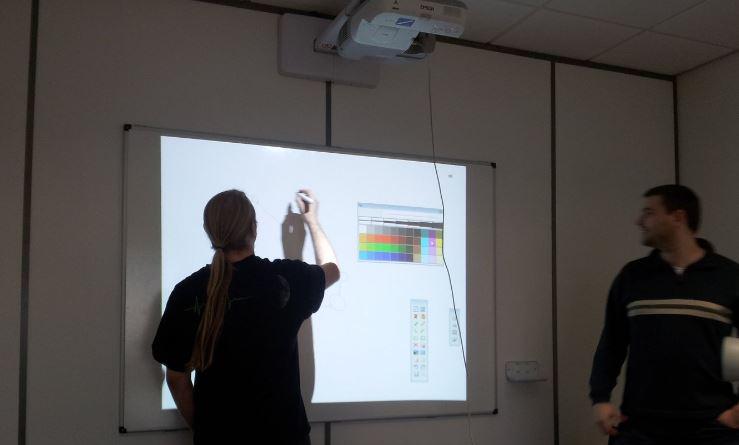 - Materi yang ditampilkan ke layar/dinding juga terganggu pencahayaan dari luar seperti cahaya yang masuk melalui jendela/pencahayaan ruangan yang terlalu gelap sehingga layar pada papan tulis terasa silau atau kurang jelas terlihat.