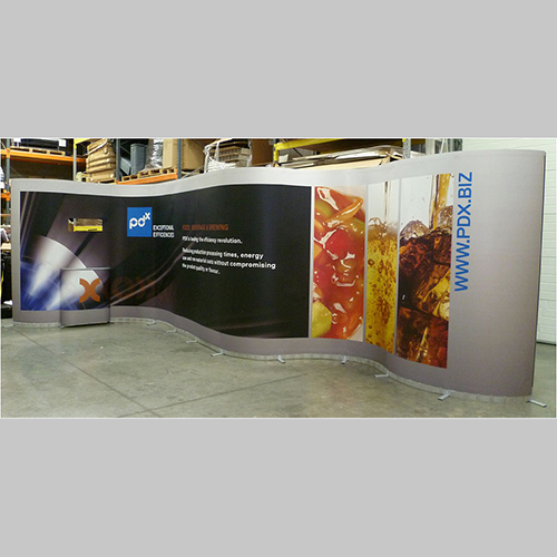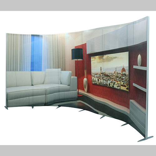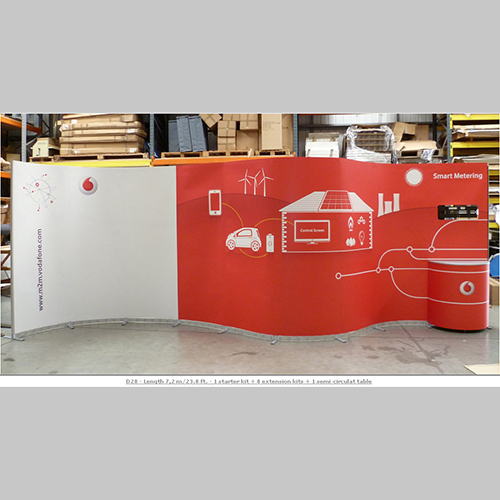 Built-in scalability as standard, add or remove panels to create an exhibition stand that suits your needs, Built-in scalability as standard, add or remove panels to create an exhibition stand that suits your needs. Flexible, modular and portable The Wave can support a range of accessories and attachments, is lightweight and can be built without any tools