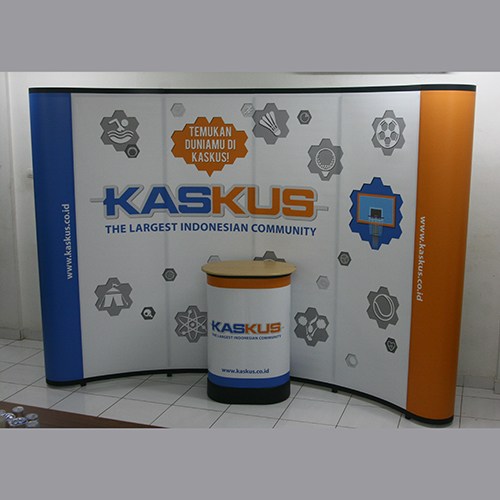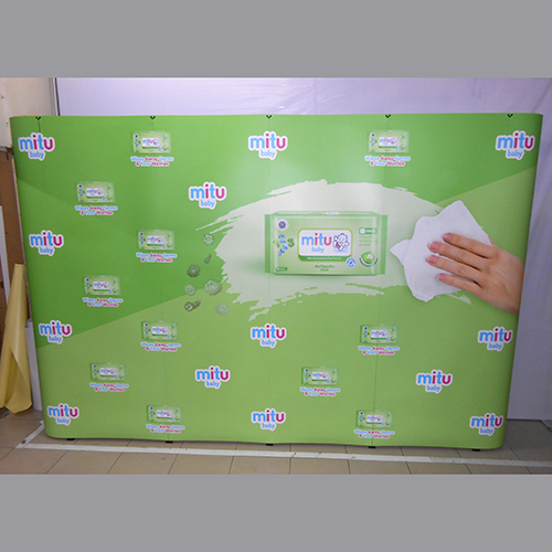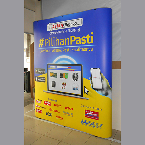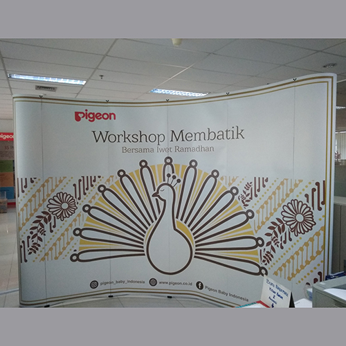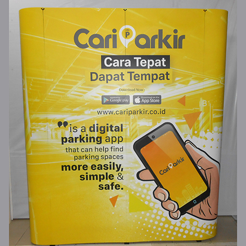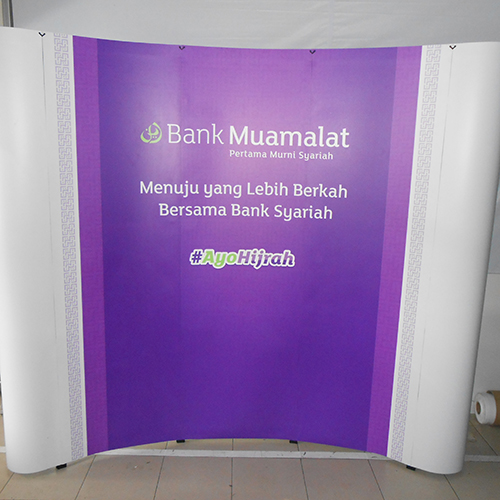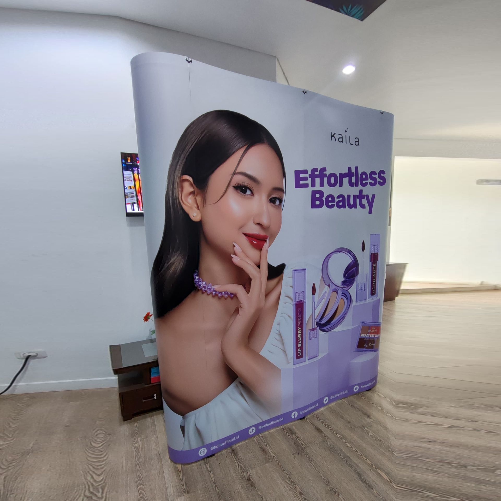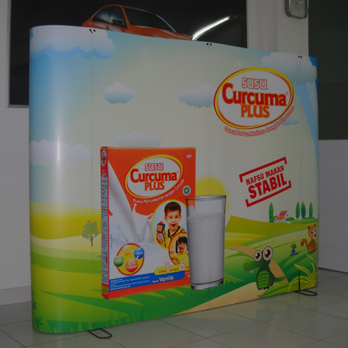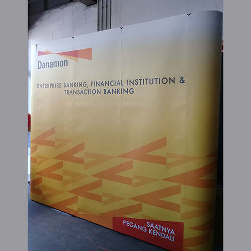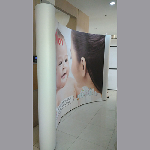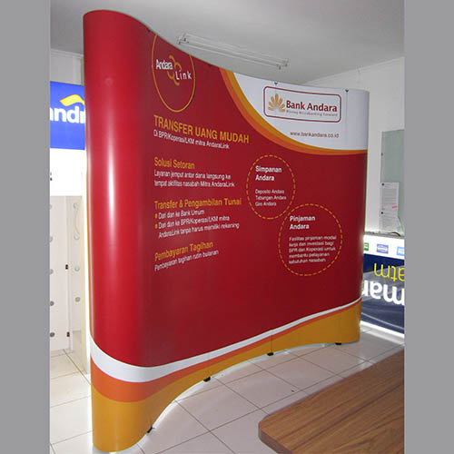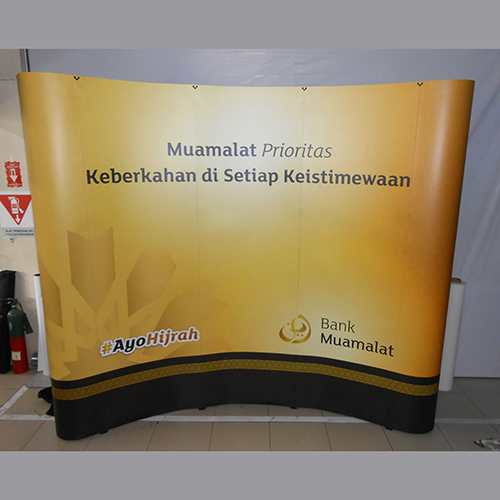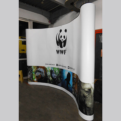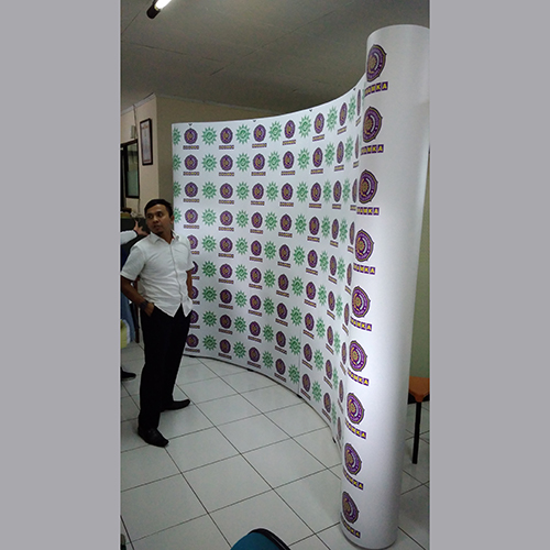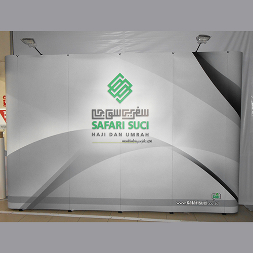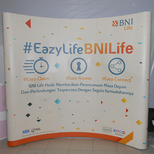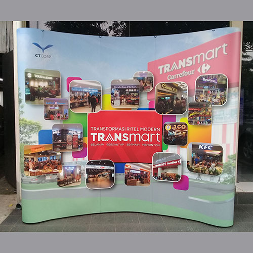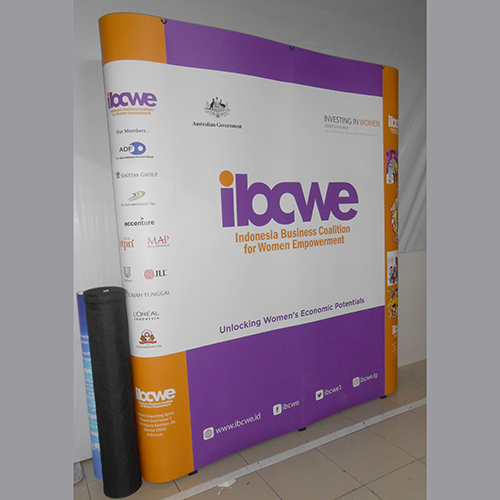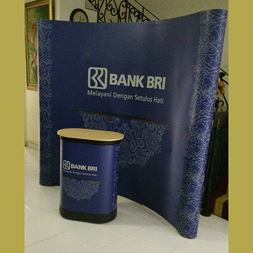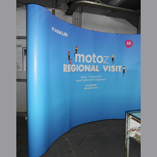Pop Up Backwall merupakan perangkat promosi untuk menampilkan visual/grafis dalam ukuran besar (backdrop). Pop Up backwall menggunakan kerangka modul besi yang kokoh Semua model display Pop Up menggunakan sistem penahan dengan pin, palang dan pengikat magnet. Banner/visual yang ingin Anda tampilkan pun tak terganggu dan akan menjadi fokus utama perhatian. Setiap pembelian backwall Pop Up 3x3 Flat atau Curve Anda akan mendapatkan. Rangka Backwall - Magnetic bars - Soft case - 2 lampu sorot spotlight - Supporting feet (khusus untuk Pop Up Backwall Flat)