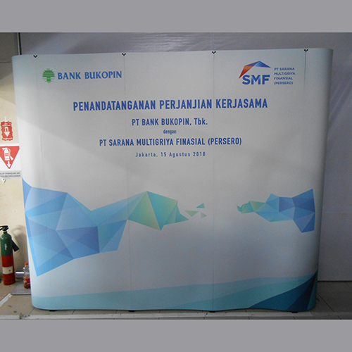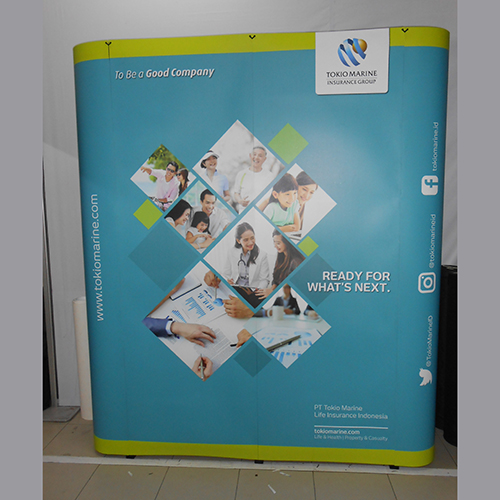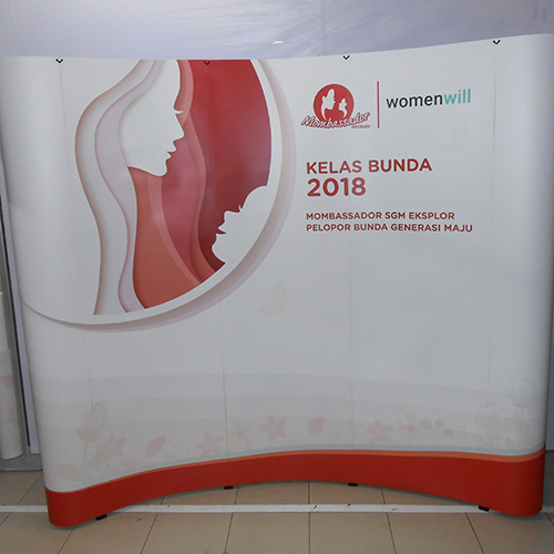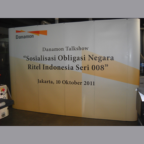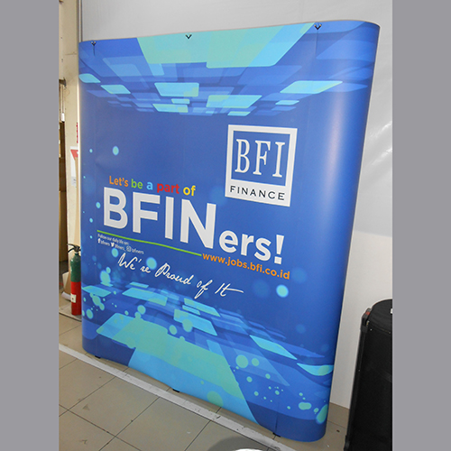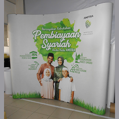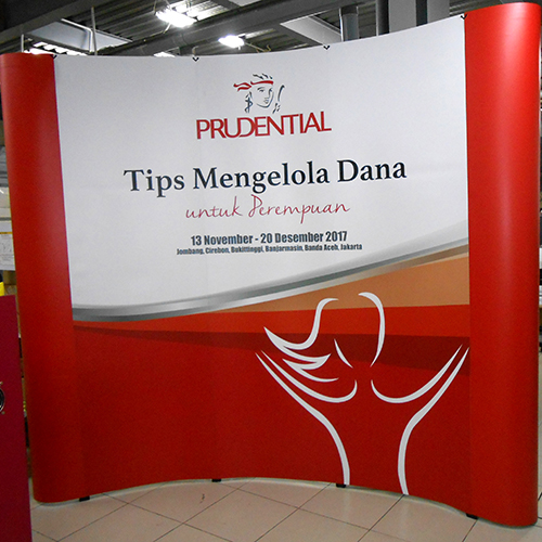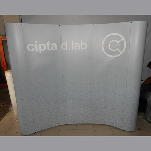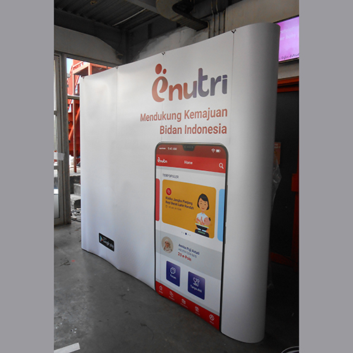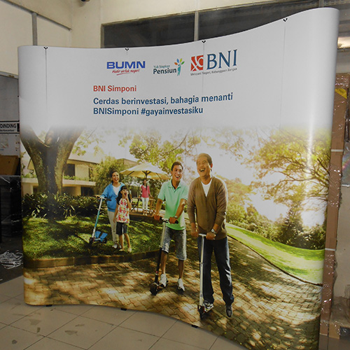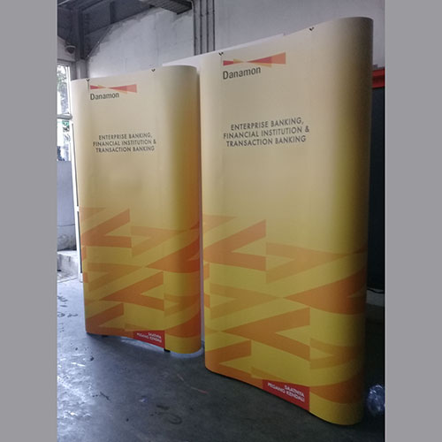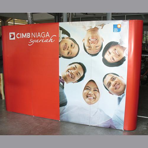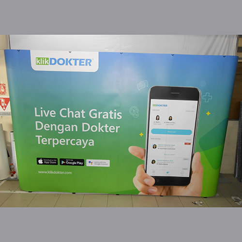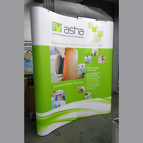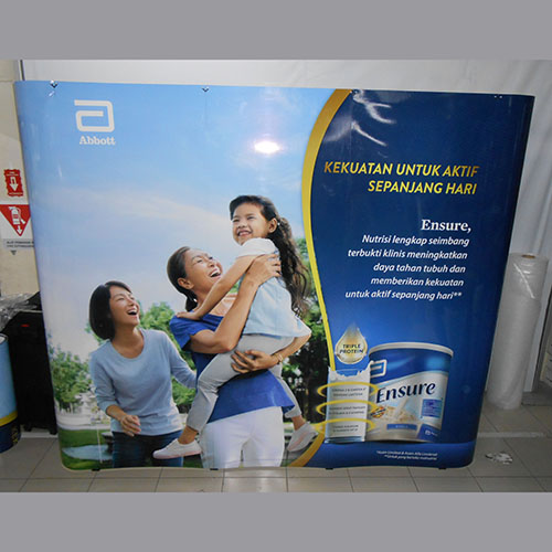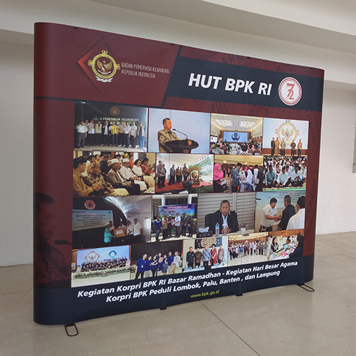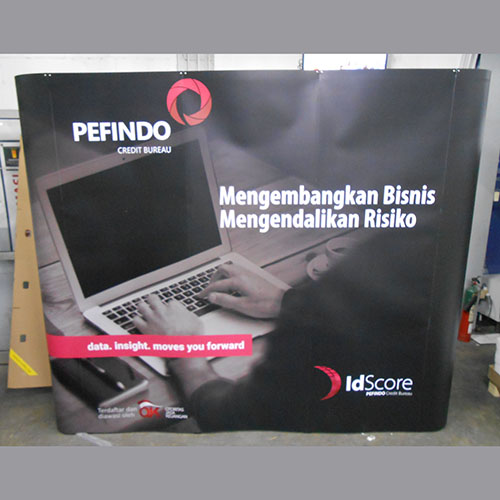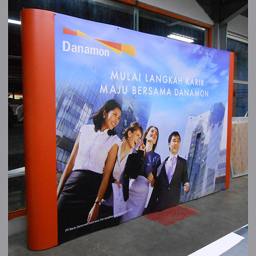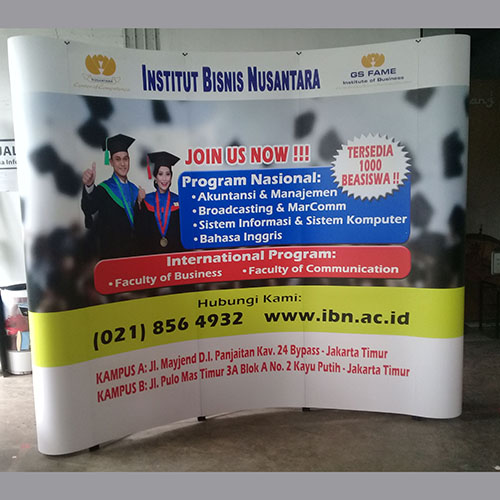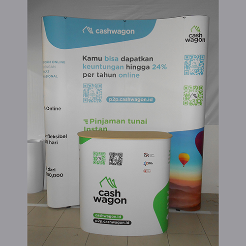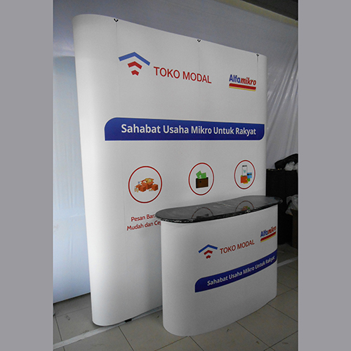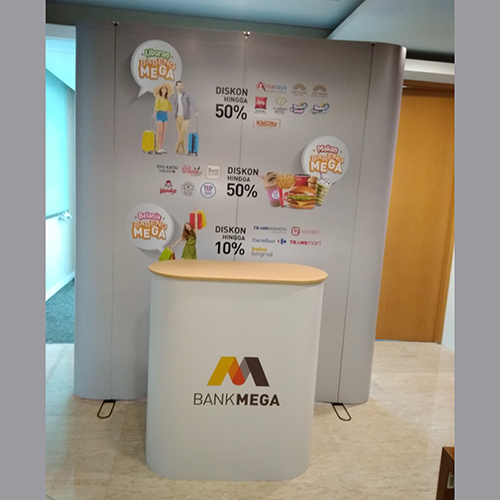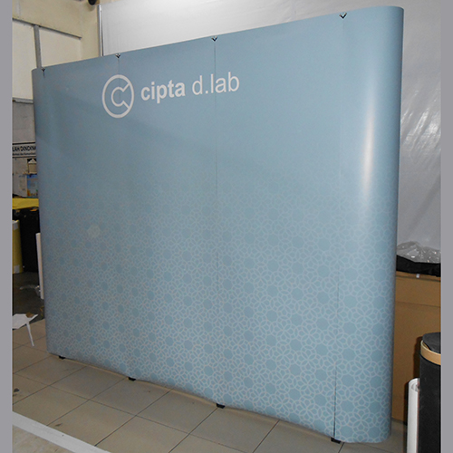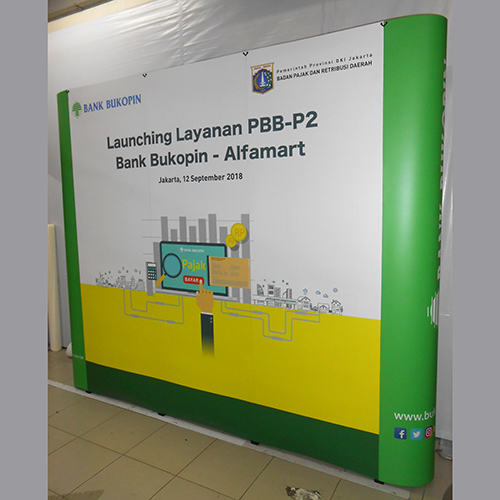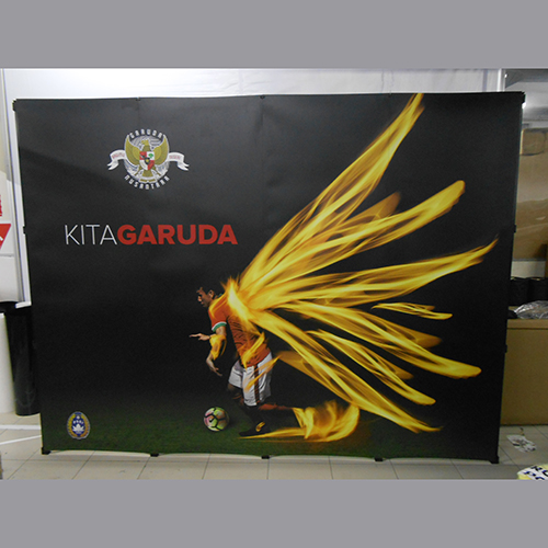 Pop Up Backwall merupakan perangkat promosi untuk menampilkan visual/grafis dalam ukuran besar (backdrop). Pop Up backwall menggunakan kerangka modul besi yang kokoh Semua model display Pop Up menggunakan sistem penahan dengan pin, palang dan pengikat magnet. Banner/visual yang ingin Anda tampilkan pun tak terganggu dan akan menjadi fokus utama perhatian. Setiap pembelian backwall Pop Up 3x3 Flat atau Curve Anda akan mendapatkan. Rangka Backwall - Magnetic bars - Soft case - 2 lampu sorot spotlight - Supporting feet (khusus untuk Pop Up Backwall Flat)