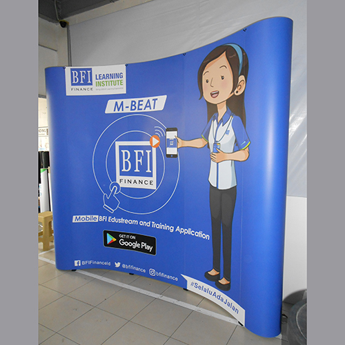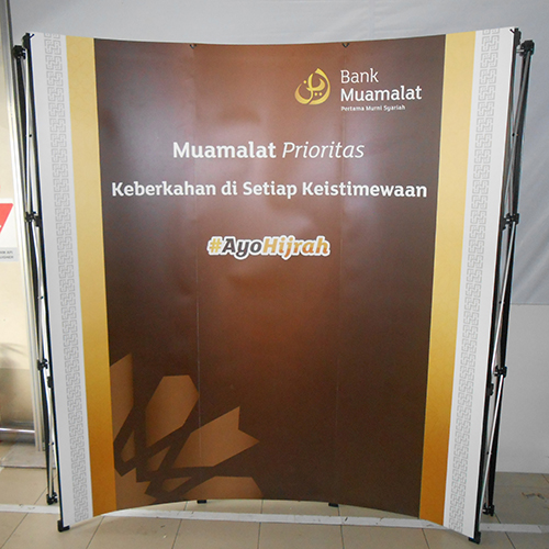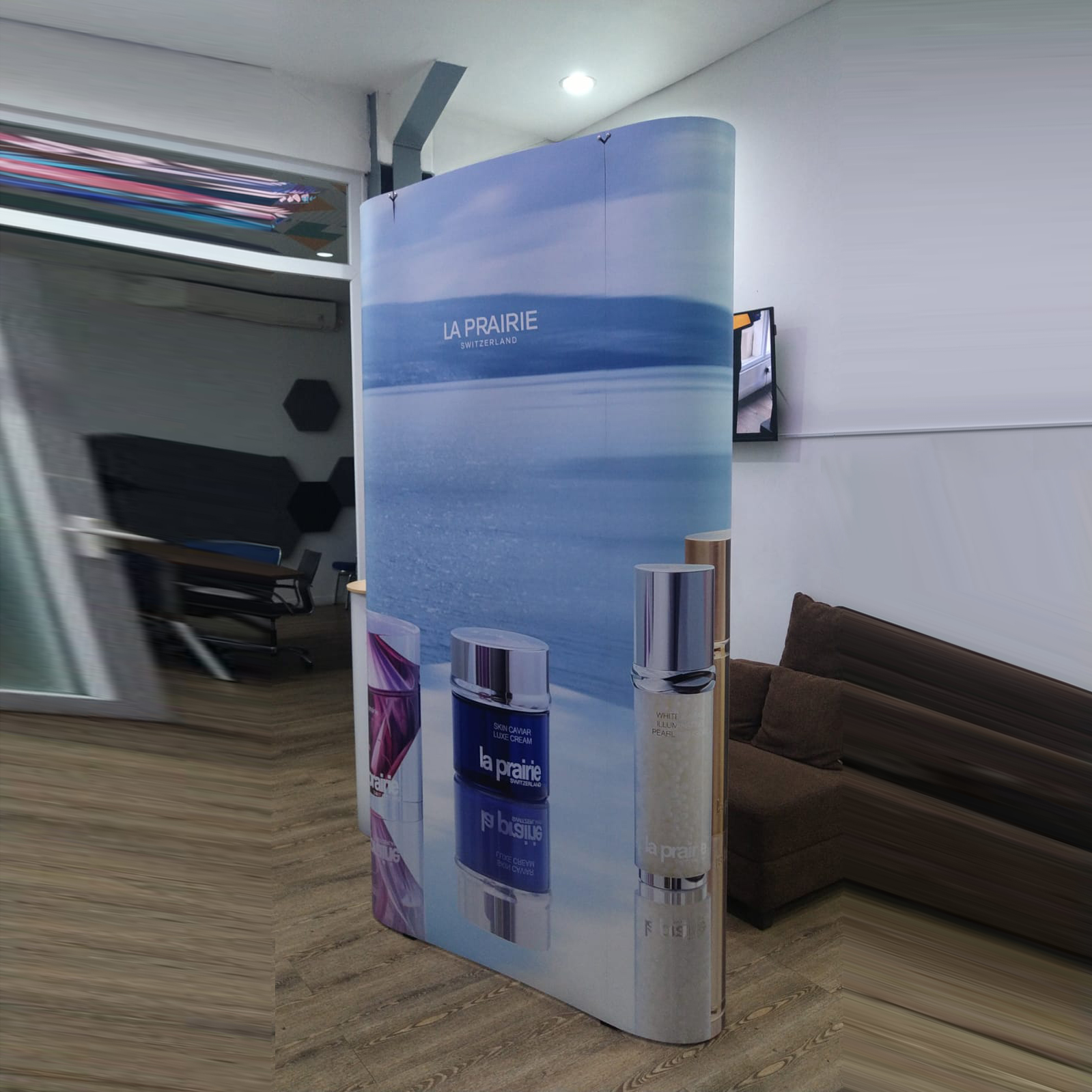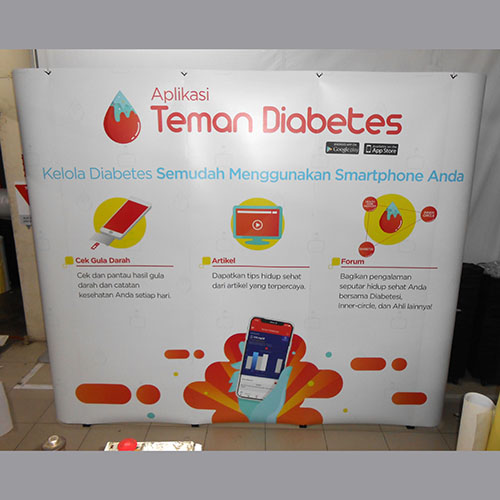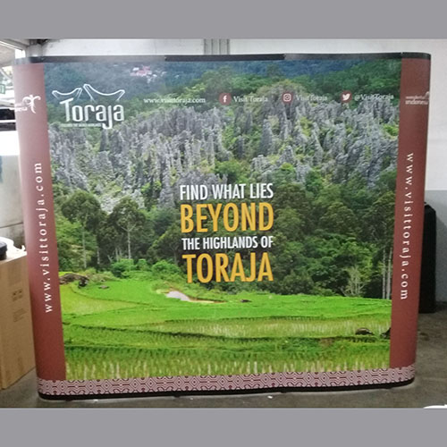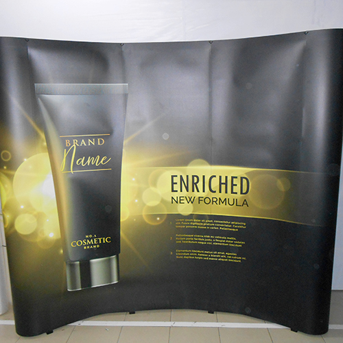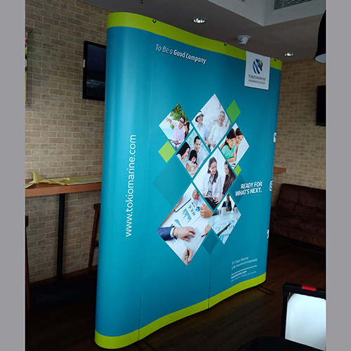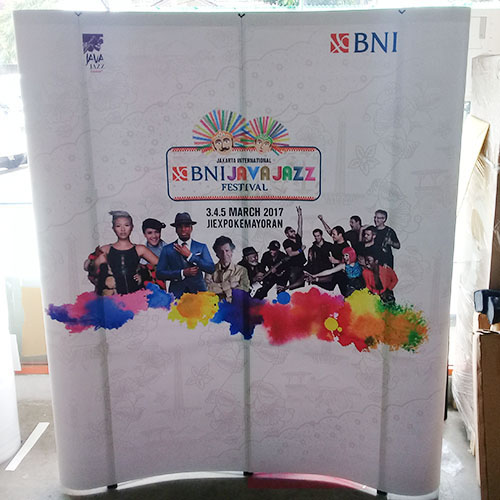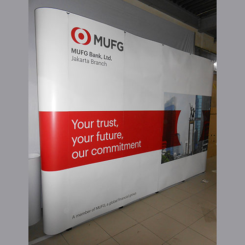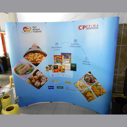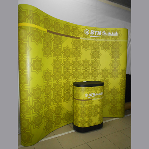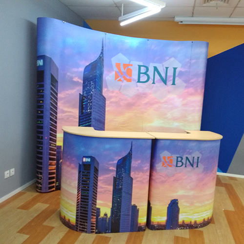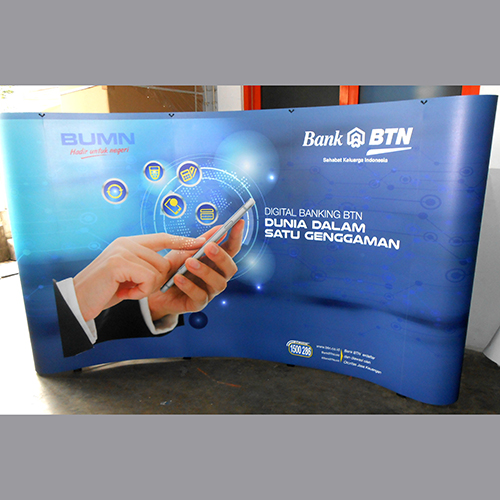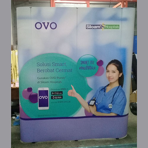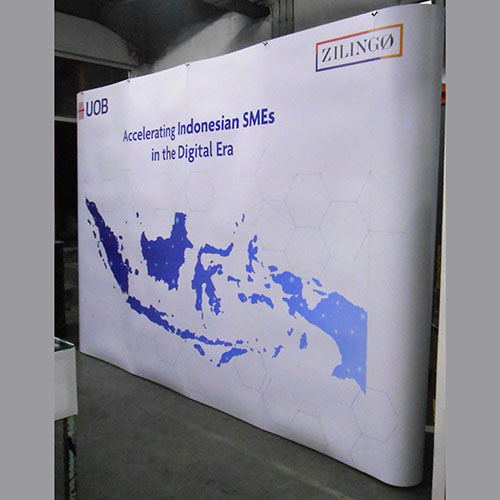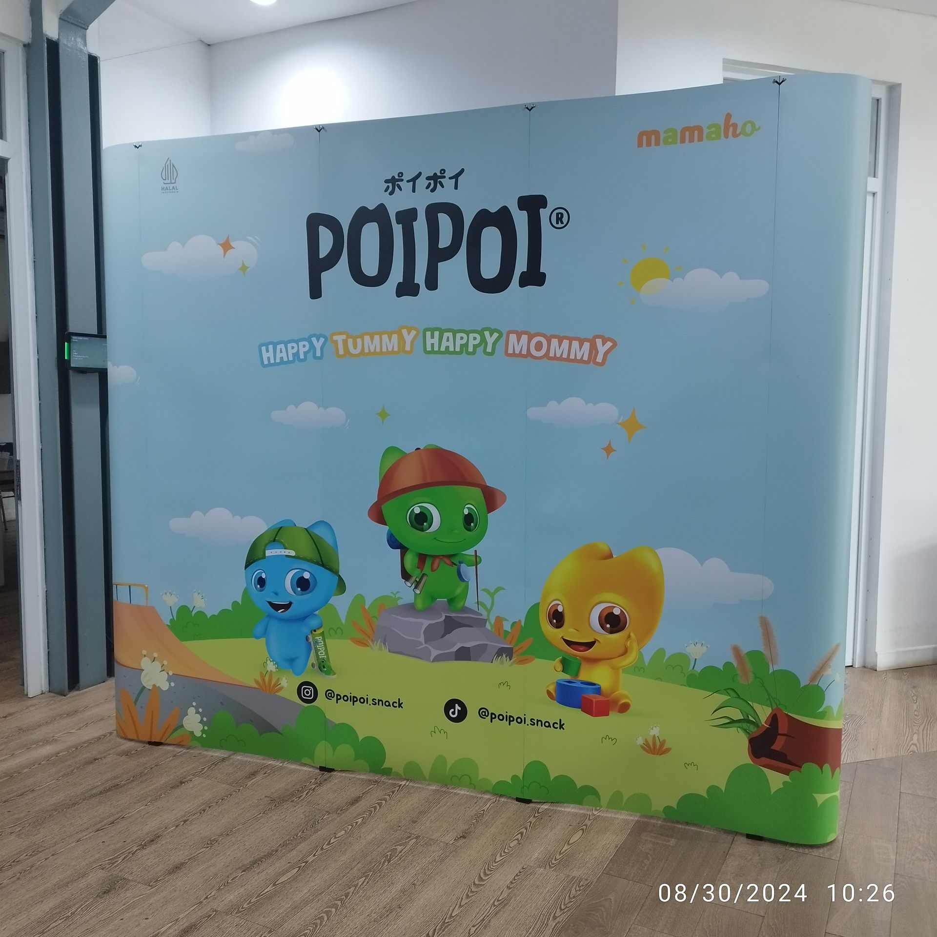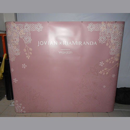 Pop Up Backwall merupakan perangkat promosi untuk menampilkan visual/grafis dalam ukuran besar (backdrop). Pop Up backwall menggunakan kerangka modul besi yang kokoh Semua model display Pop Up menggunakan sistem penahan dengan pin, palang dan pengikat magnet. Banner/visual yang ingin Anda tampilkan pun tak terganggu dan akan menjadi fokus utama perhatian. Setiap pembelian backwall Pop Up 3x3 Flat atau Curve Anda akan mendapatkan. Rangka Backwall - Magnetic bars - Soft case - 2 lampu sorot spotlight - Supporting feet (khusus untuk Pop Up Backwall Flat)