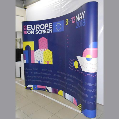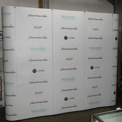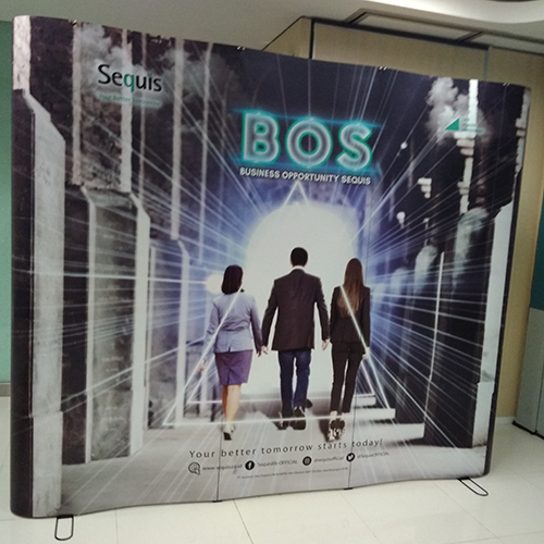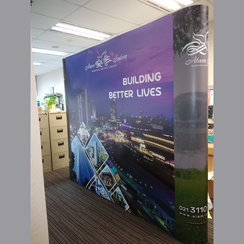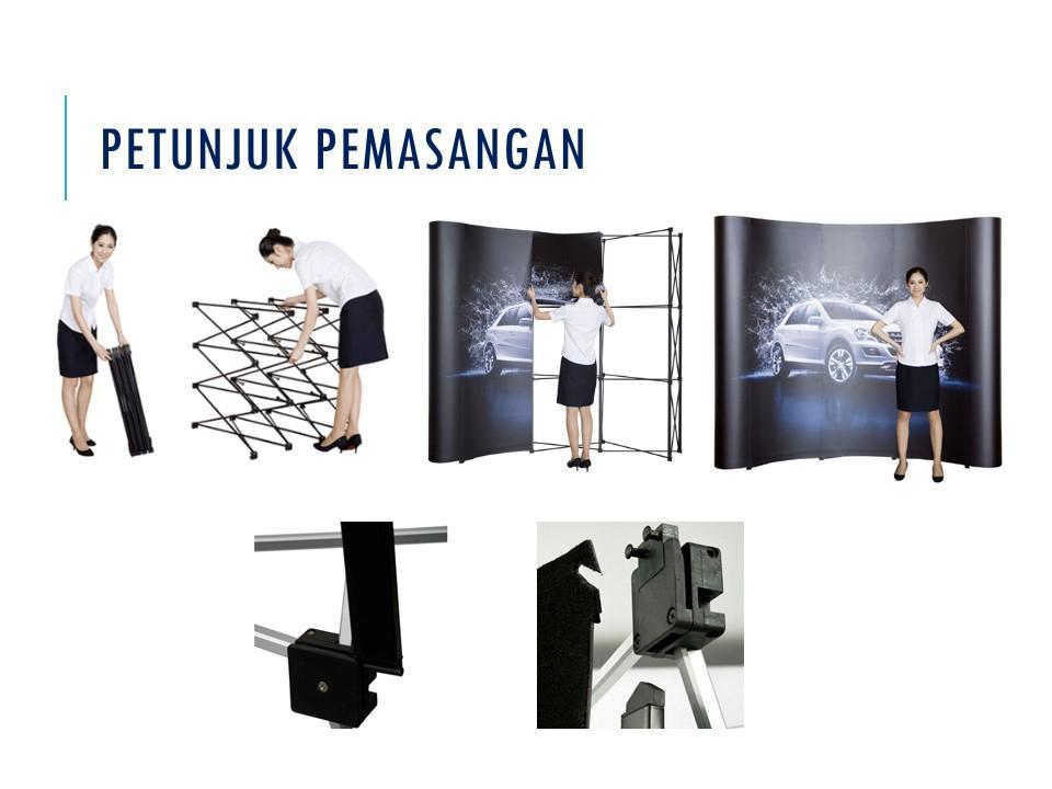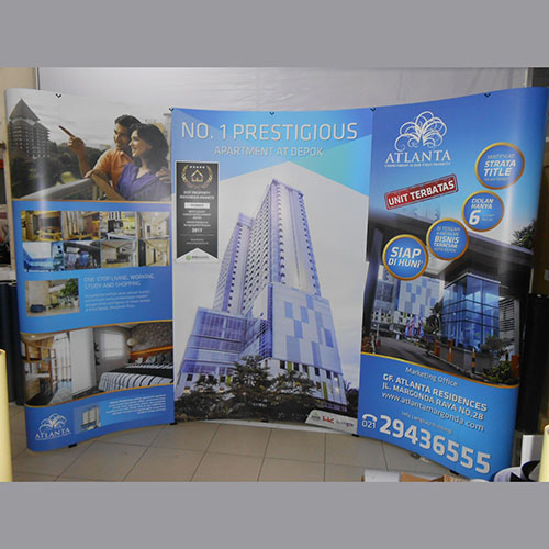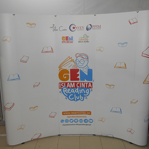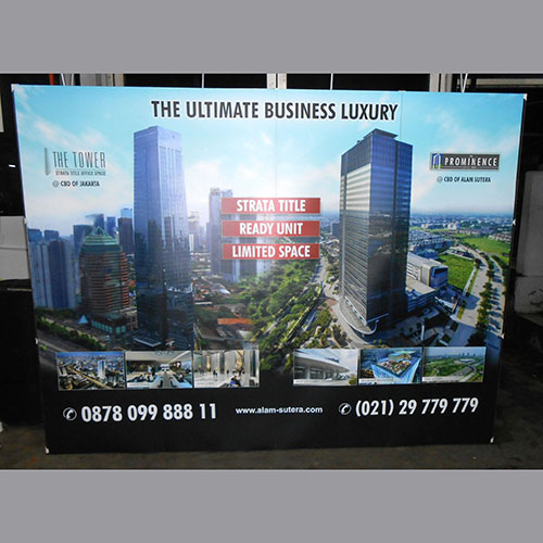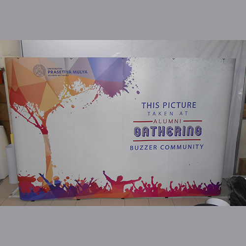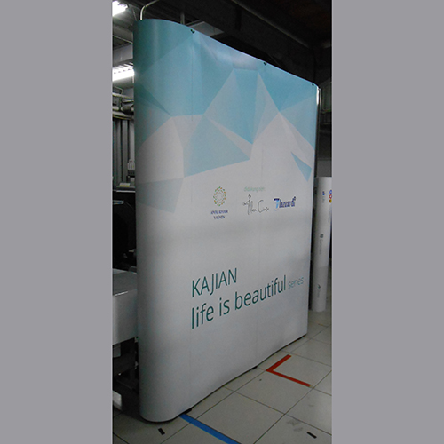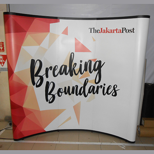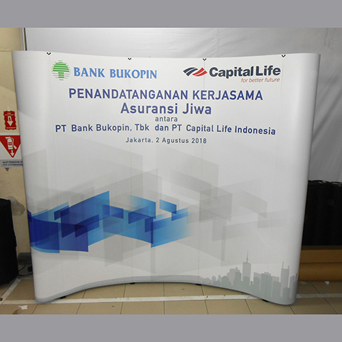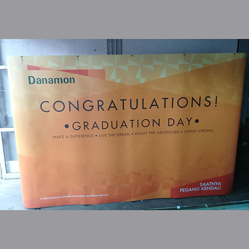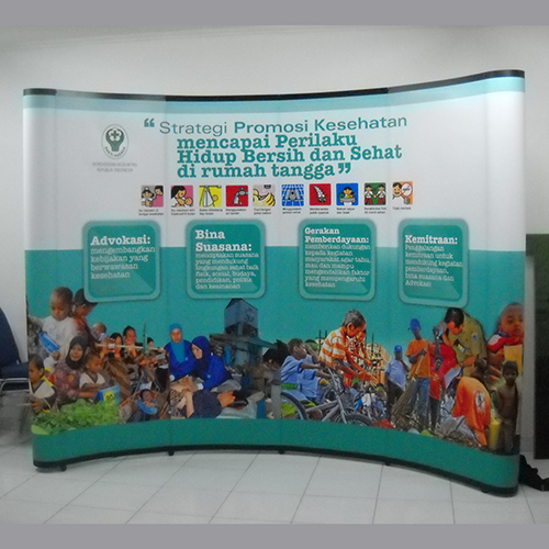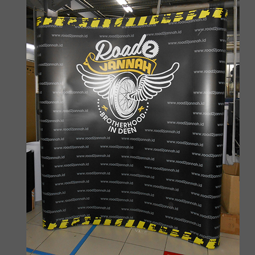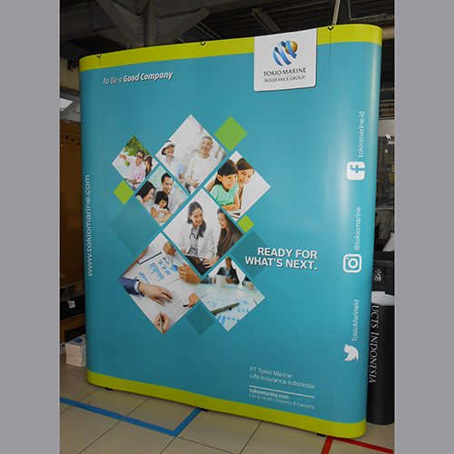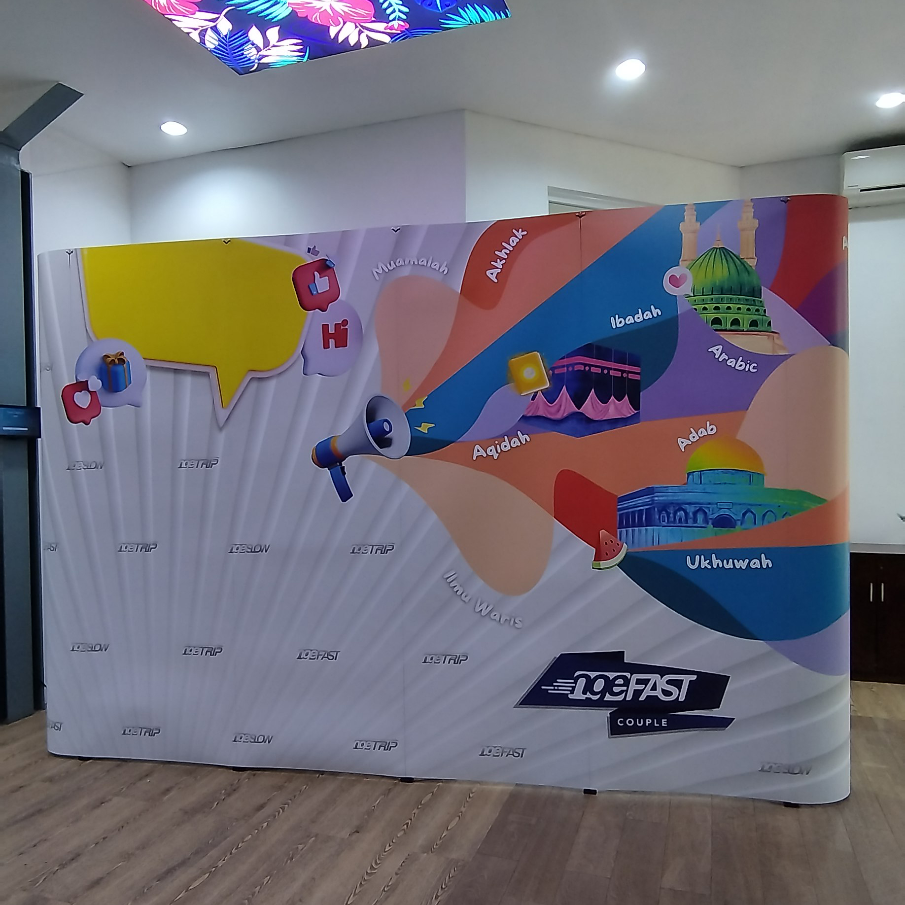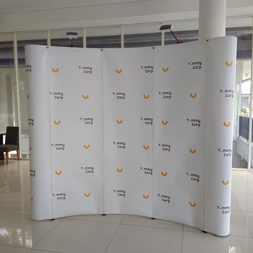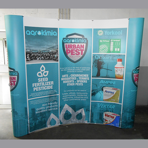 Pop Up Backwall merupakan perangkat promosi untuk menampilkan visual/grafis dalam ukuran besar (backdrop). Pop Up backwall menggunakan kerangka modul besi yang kokoh Semua model display Pop Up menggunakan sistem penahan dengan pin, palang dan pengikat magnet. Banner/visual yang ingin Anda tampilkan pun tak terganggu dan akan menjadi fokus utama perhatian. Setiap pembelian backwall Pop Up 3x3 Flat atau Curve Anda akan mendapatkan. Rangka Backwall - Magnetic bars - Soft case - 2 lampu sorot spotlight - Supporting feet (khusus untuk Pop Up Backwall Flat)