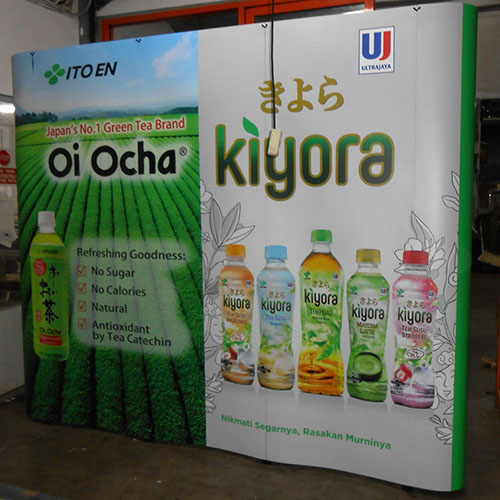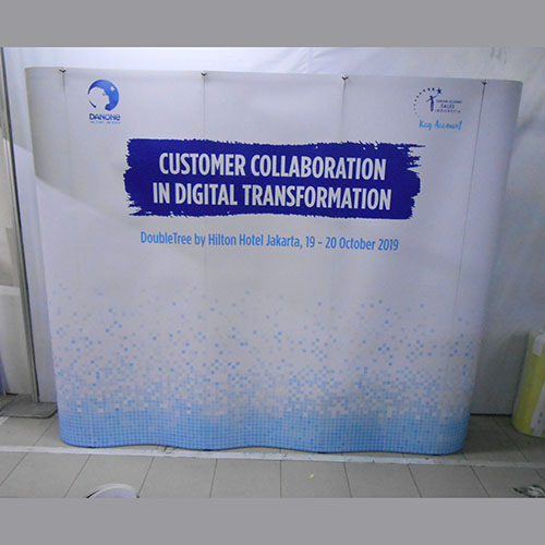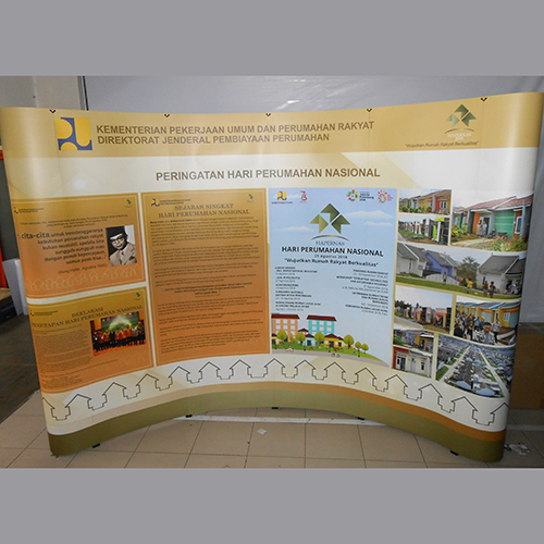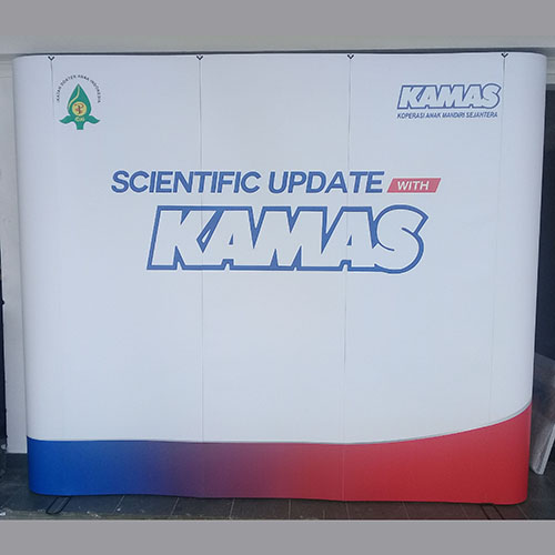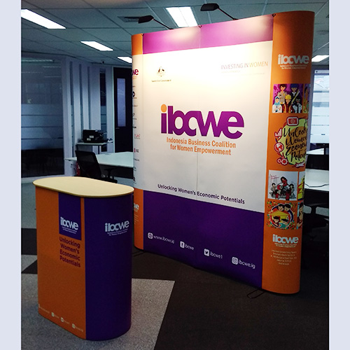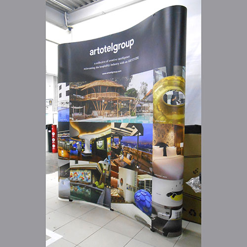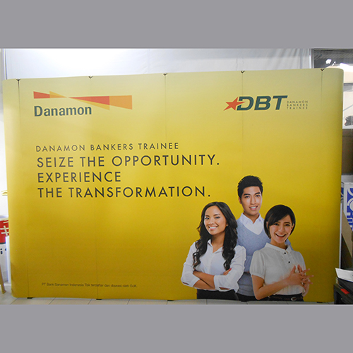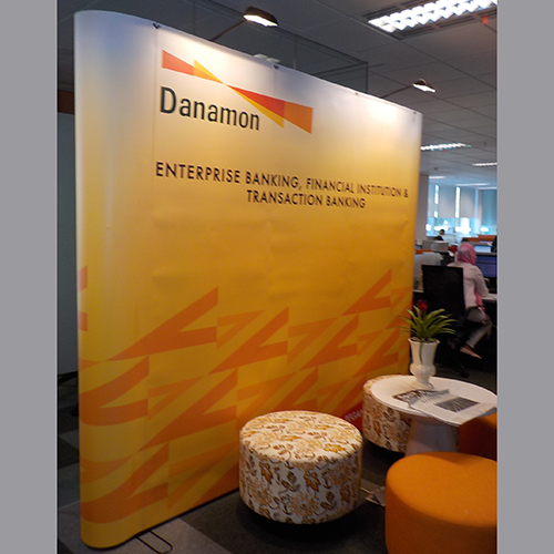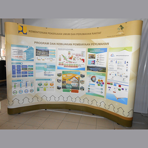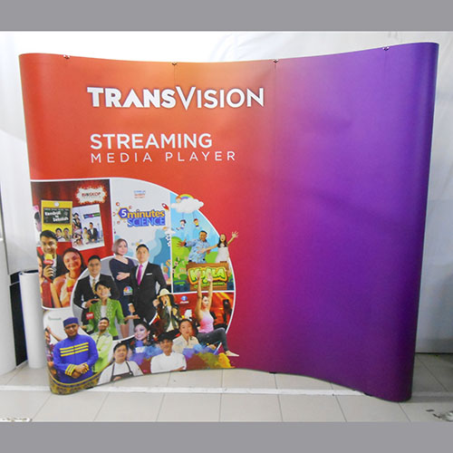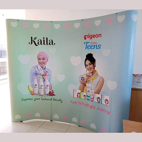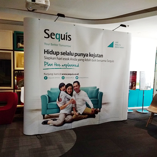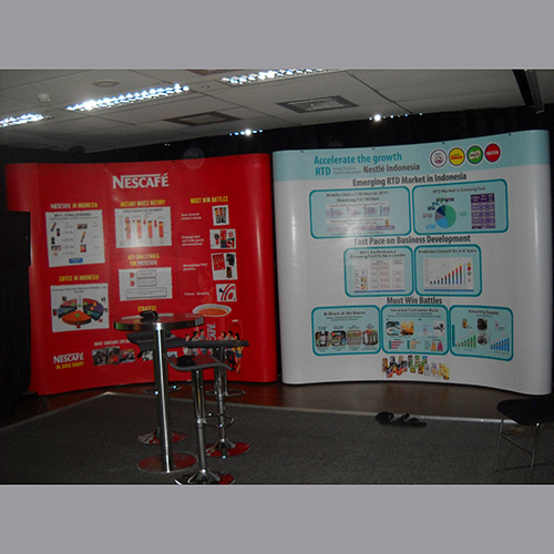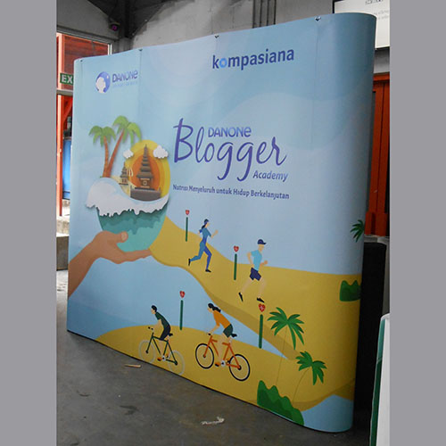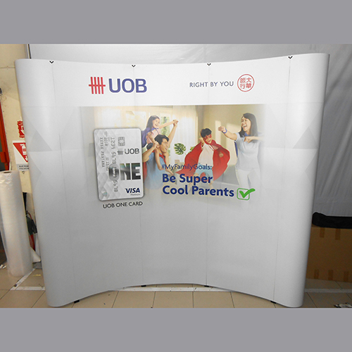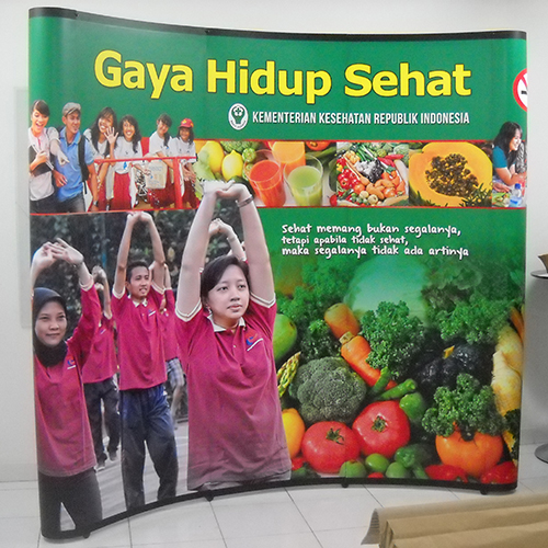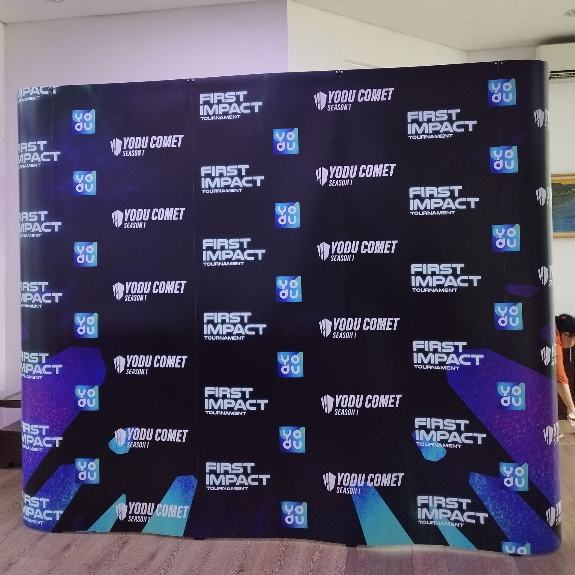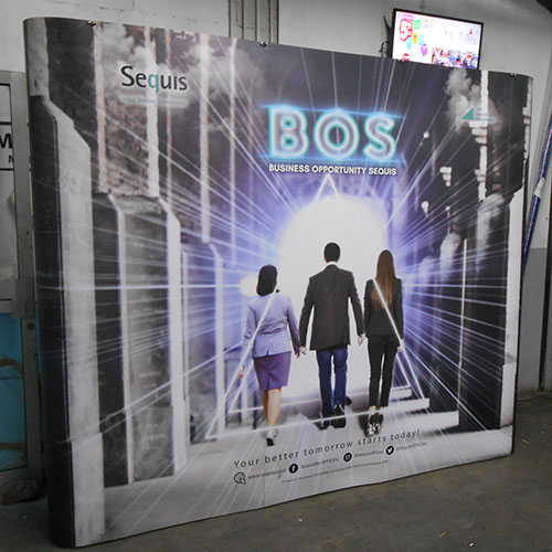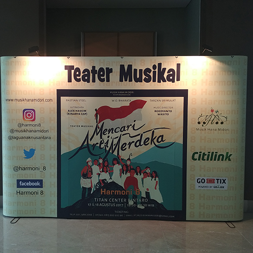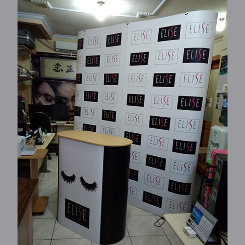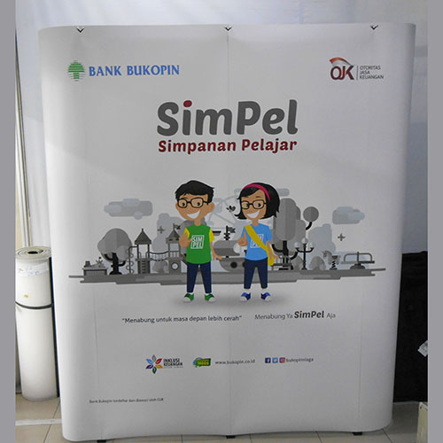 Pop Up Backwall merupakan perangkat promosi untuk menampilkan visual/grafis dalam ukuran besar (backdrop). Pop Up backwall menggunakan kerangka modul besi yang kokoh Semua model display Pop Up menggunakan sistem penahan dengan pin, palang dan pengikat magnet. Banner/visual yang ingin Anda tampilkan pun tak terganggu dan akan menjadi fokus utama perhatian. Setiap pembelian backwall Pop Up 3x3 Flat atau Curve Anda akan mendapatkan. Rangka Backwall - Magnetic bars - Soft case - 2 lampu sorot spotlight - Supporting feet (khusus untuk Pop Up Backwall Flat)