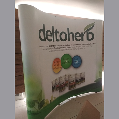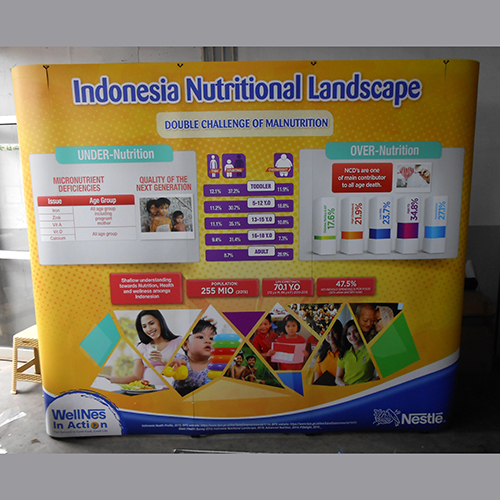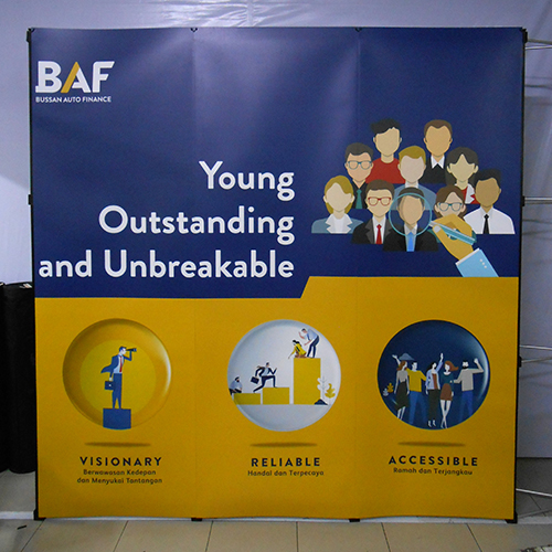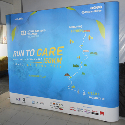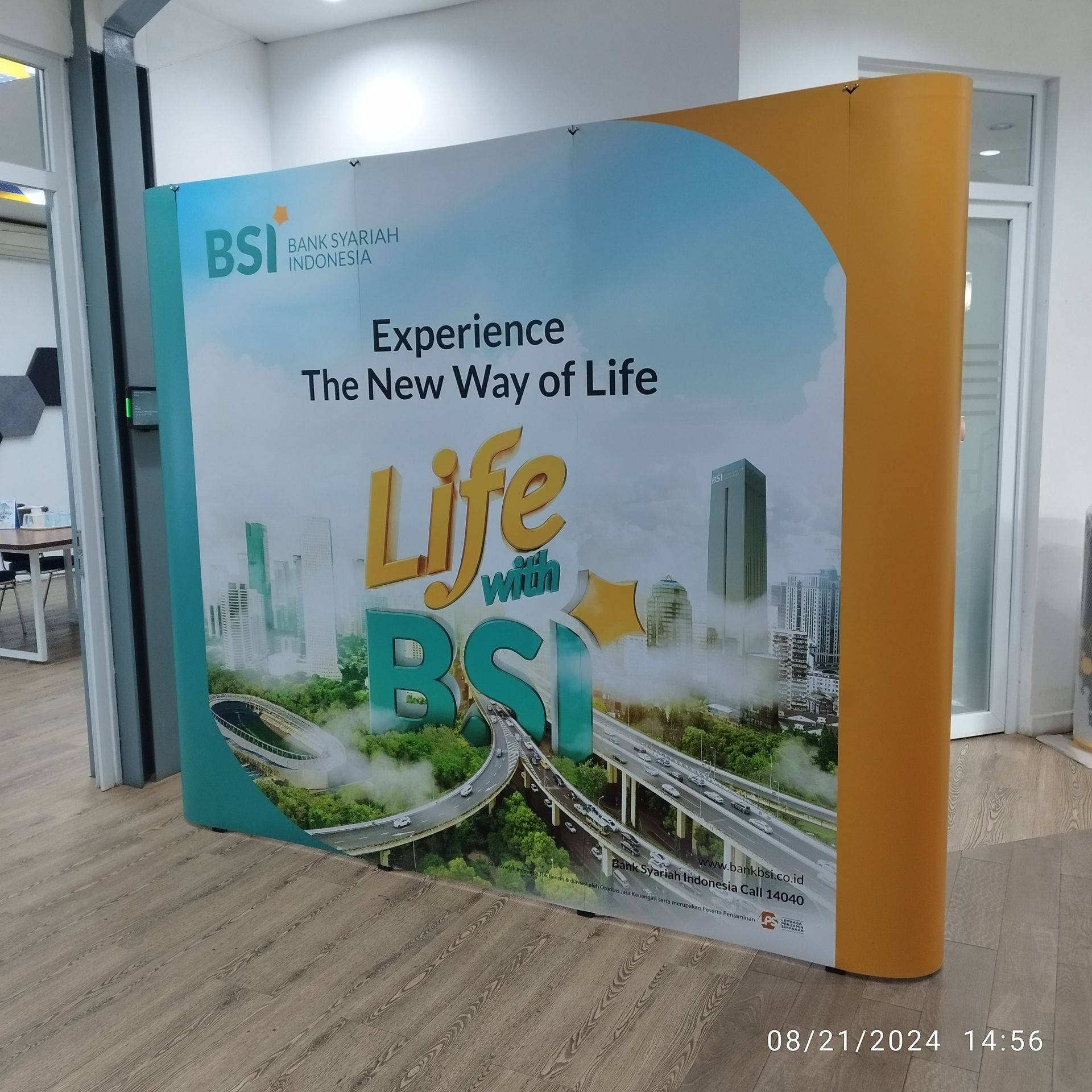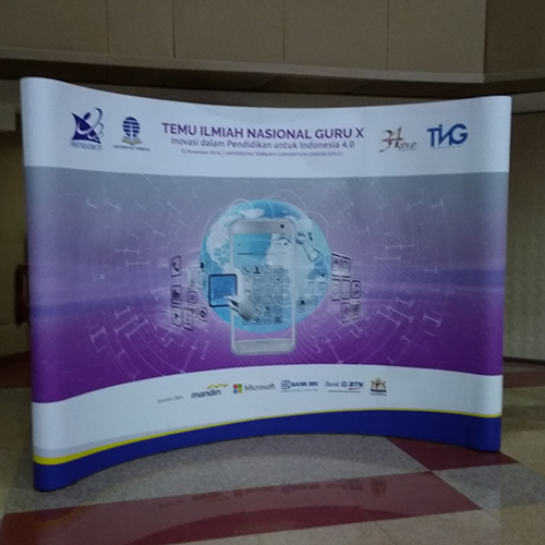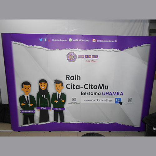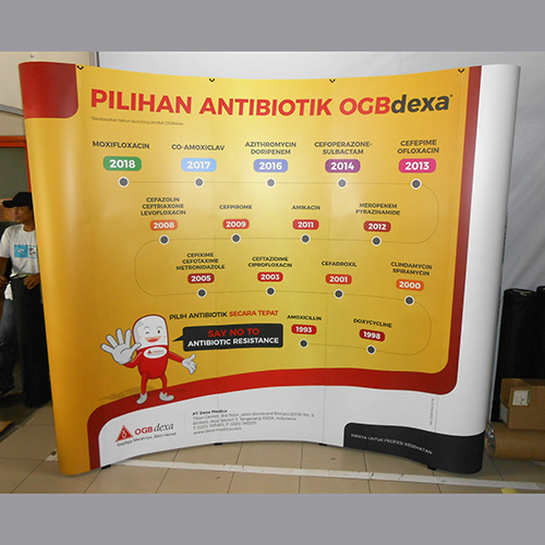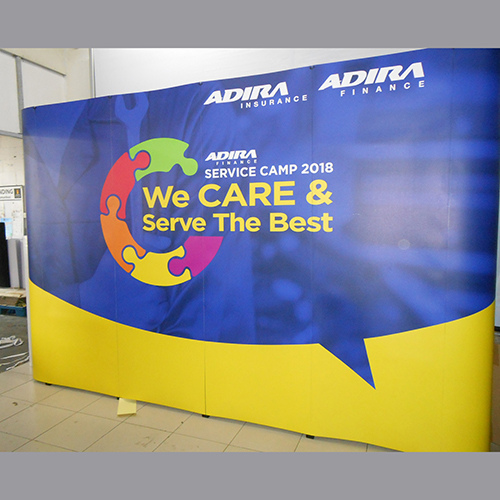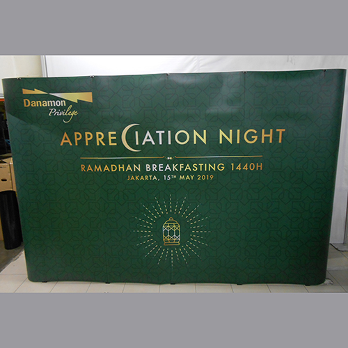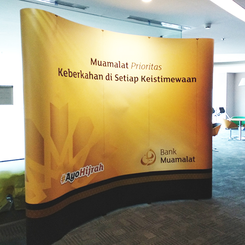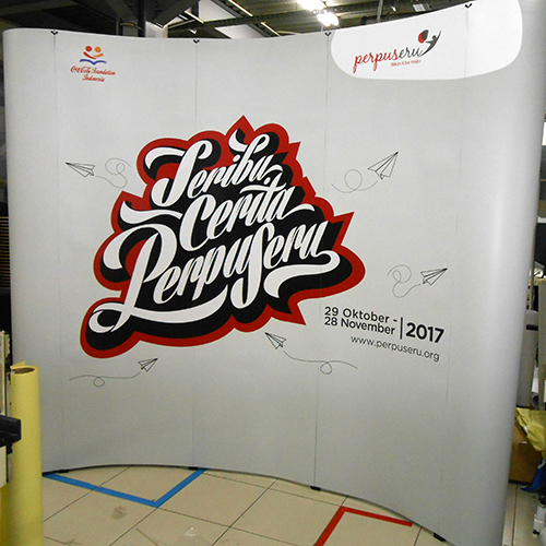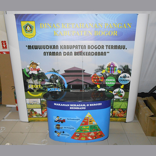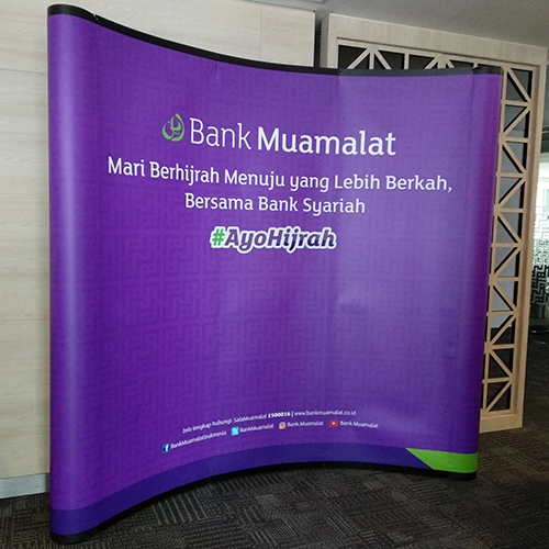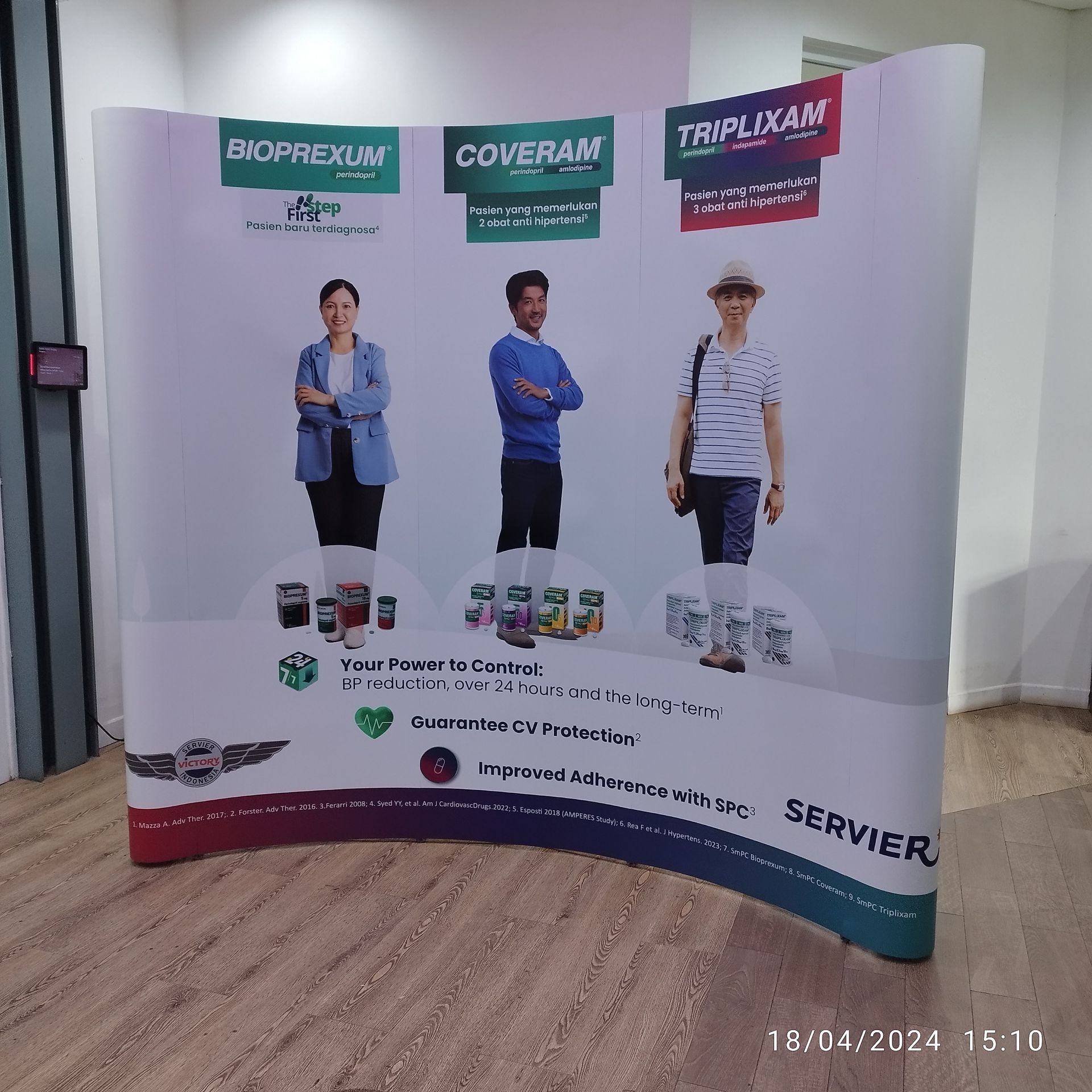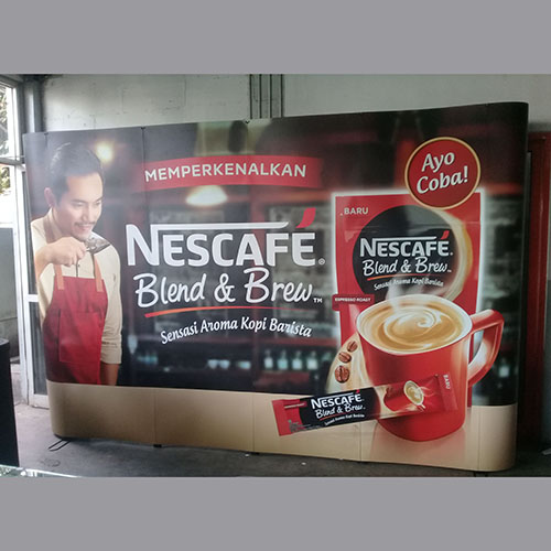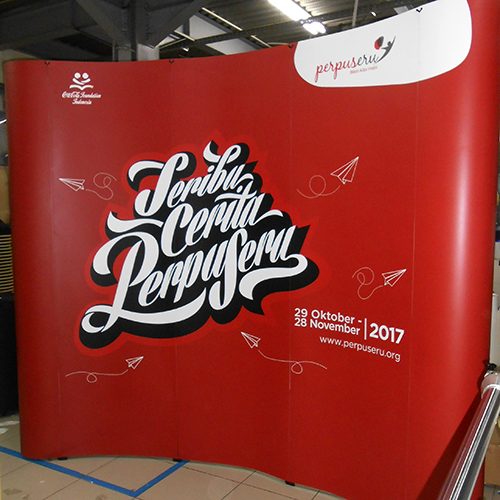 Pop Up Backwall merupakan perangkat promosi untuk menampilkan visual/grafis dalam ukuran besar (backdrop). Pop Up backwall menggunakan kerangka modul besi yang kokoh Semua model display Pop Up menggunakan sistem penahan dengan pin, palang dan pengikat magnet. Banner/visual yang ingin Anda tampilkan pun tak terganggu dan akan menjadi fokus utama perhatian. Setiap pembelian backwall Pop Up 3x3 Flat atau Curve Anda akan mendapatkan. Rangka Backwall - Magnetic bars - Soft case - 2 lampu sorot spotlight - Supporting feet (khusus untuk Pop Up Backwall Flat)