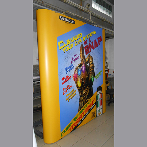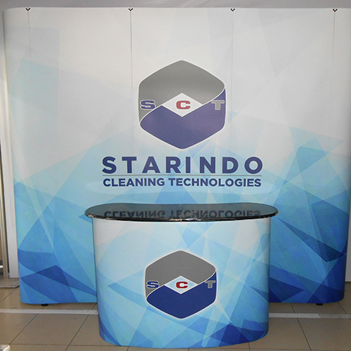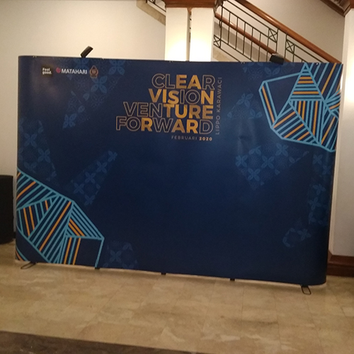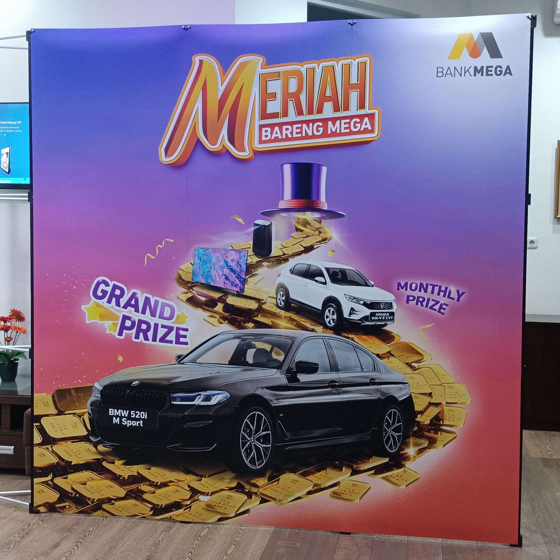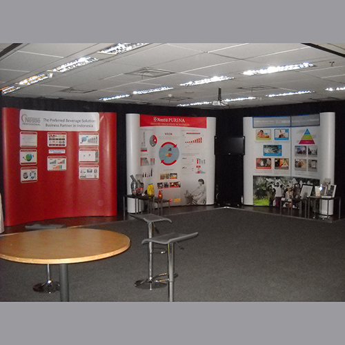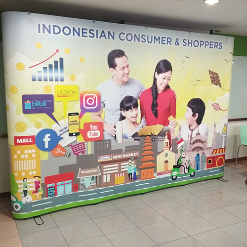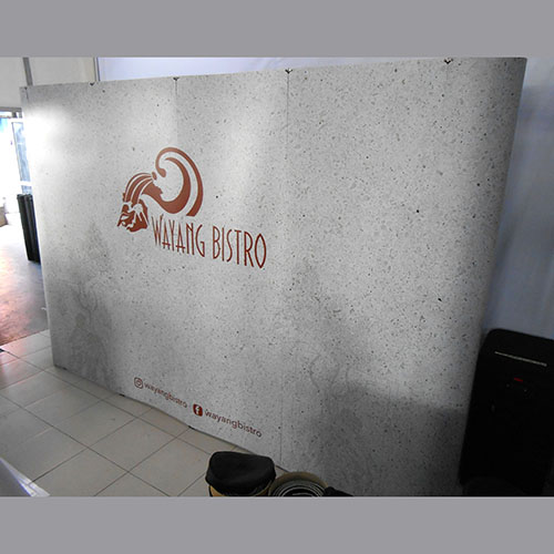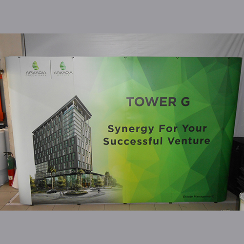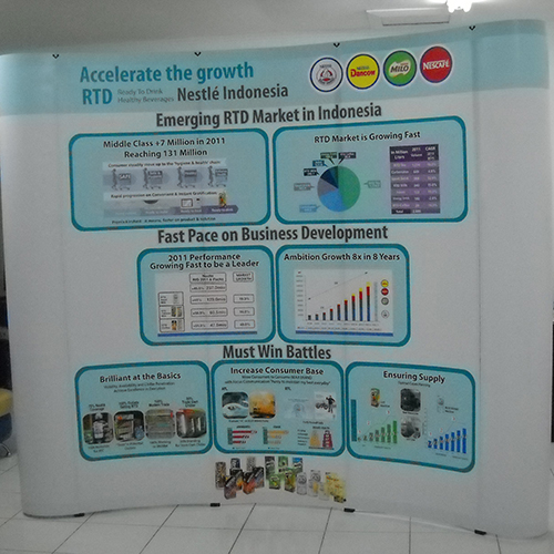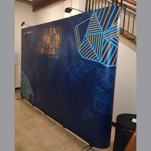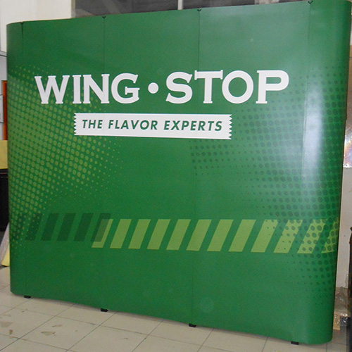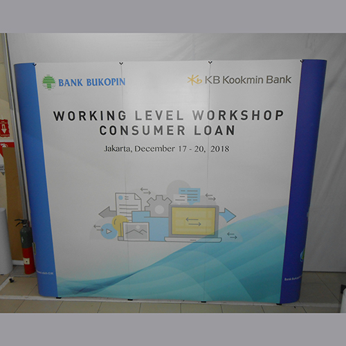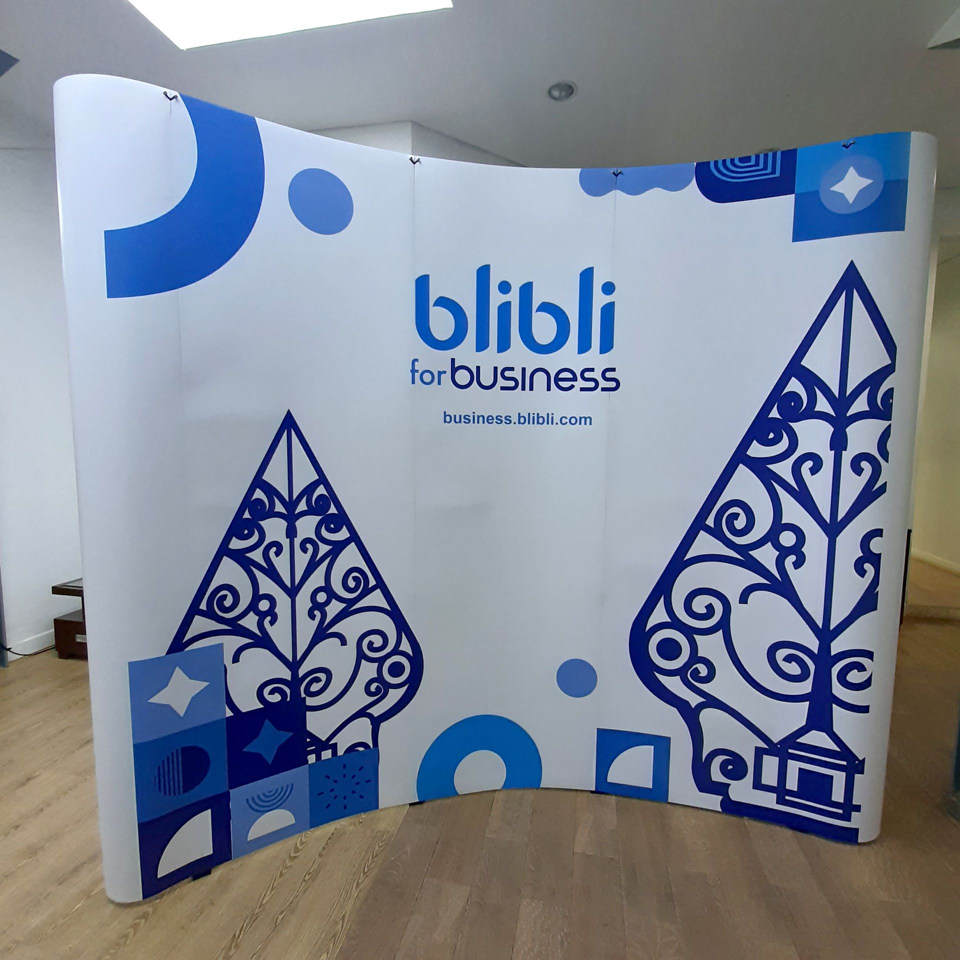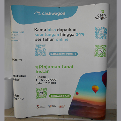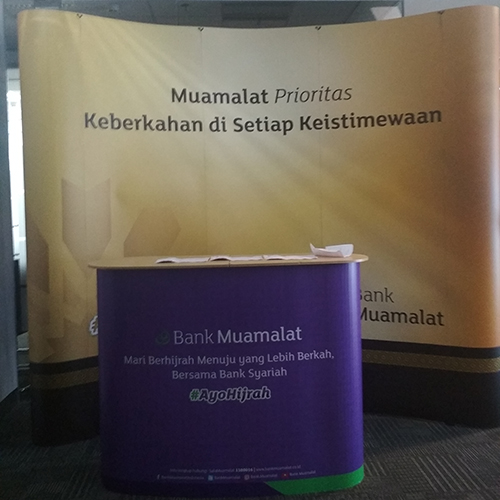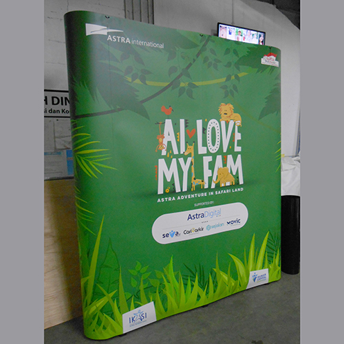 Pop Up Backwall merupakan perangkat promosi untuk menampilkan visual/grafis dalam ukuran besar (backdrop). Pop Up backwall menggunakan kerangka modul besi yang kokoh Semua model display Pop Up menggunakan sistem penahan dengan pin, palang dan pengikat magnet. Banner/visual yang ingin Anda tampilkan pun tak terganggu dan akan menjadi fokus utama perhatian. Setiap pembelian backwall Pop Up 3x3 Flat atau Curve Anda akan mendapatkan. Rangka Backwall - Magnetic bars - Soft case - 2 lampu sorot spotlight - Supporting feet (khusus untuk Pop Up Backwall Flat)