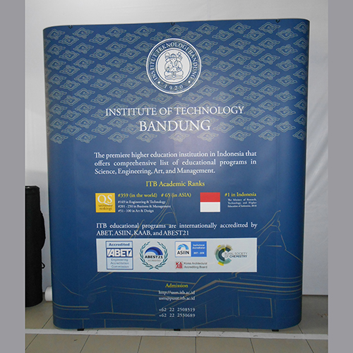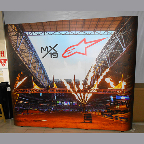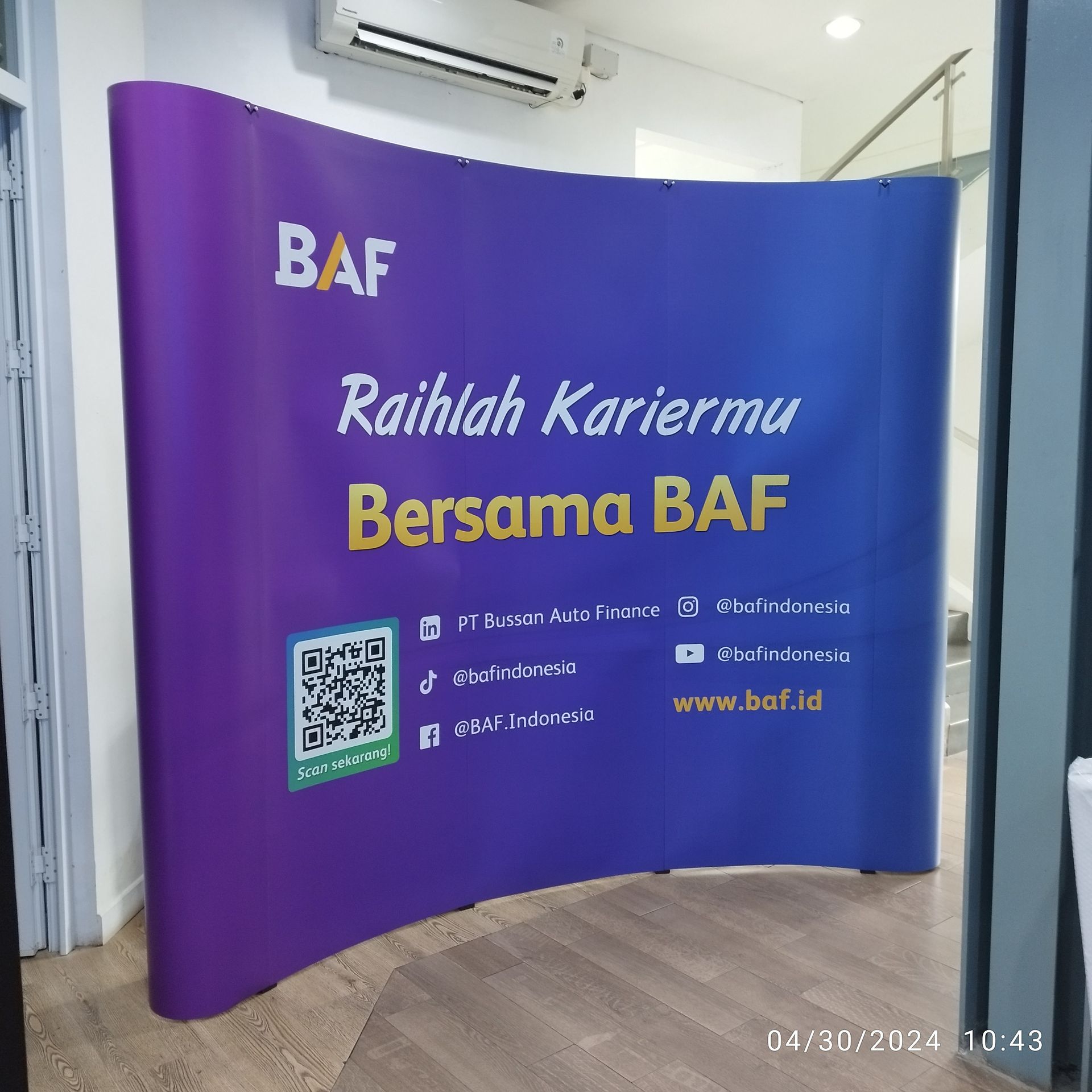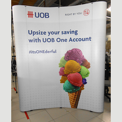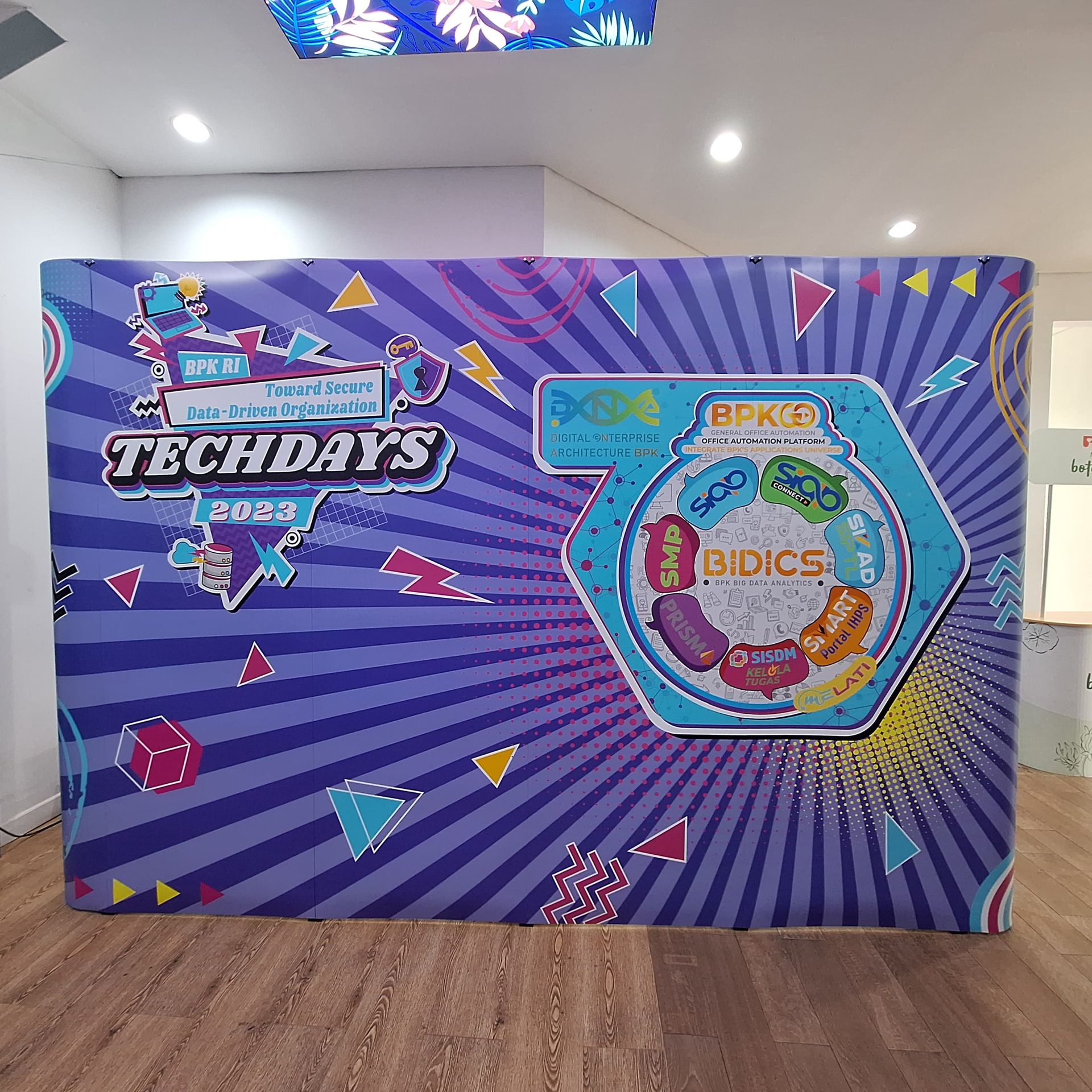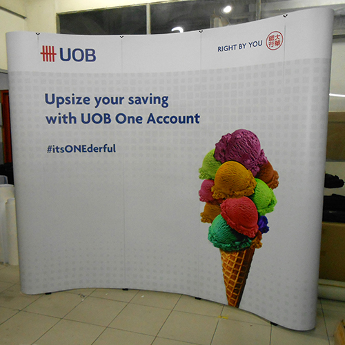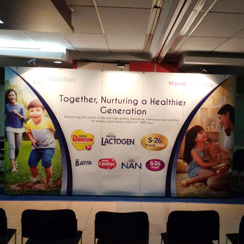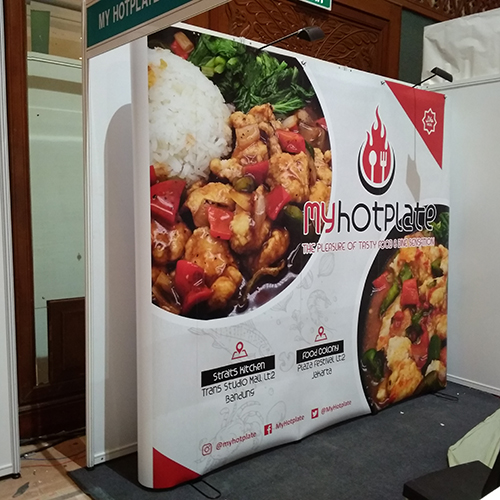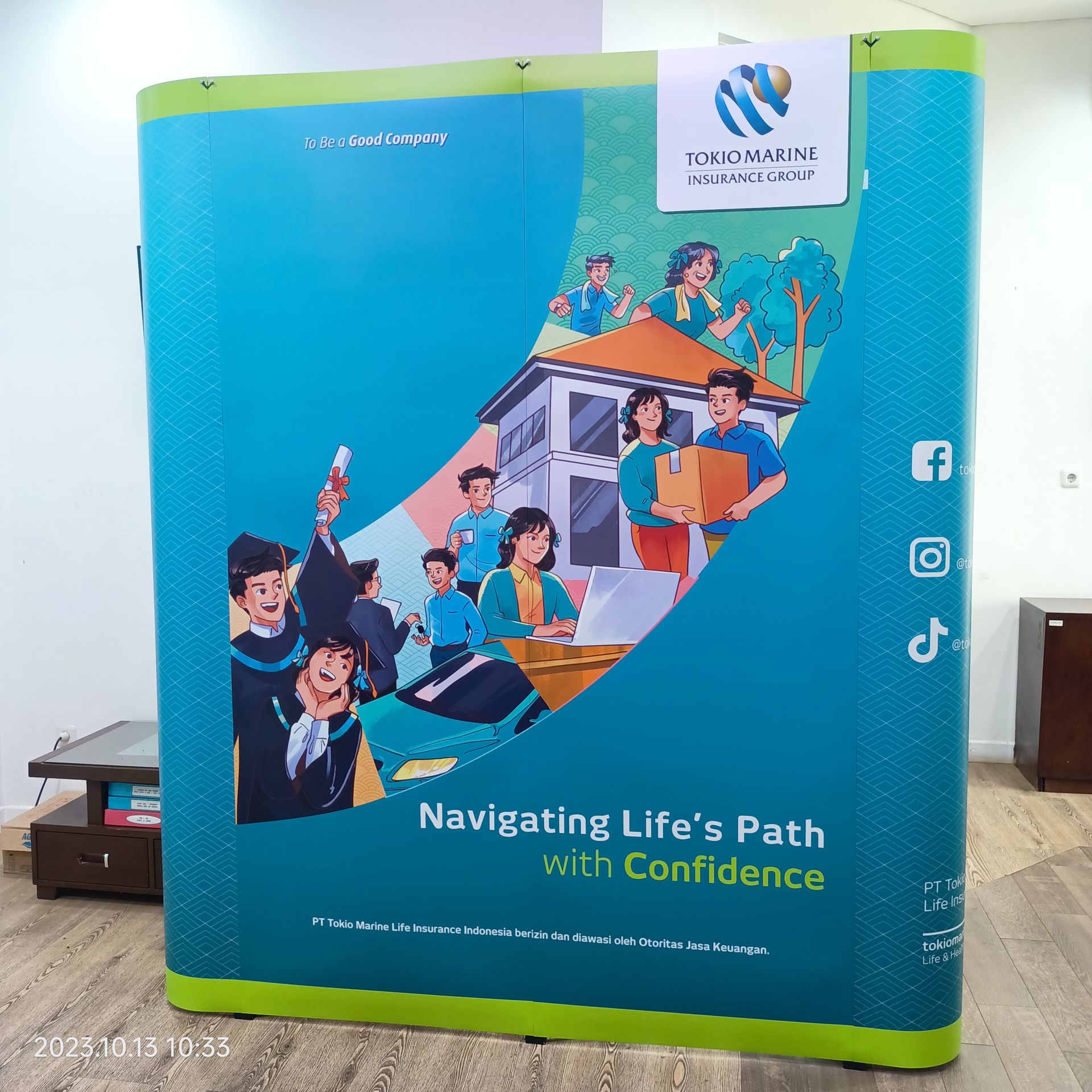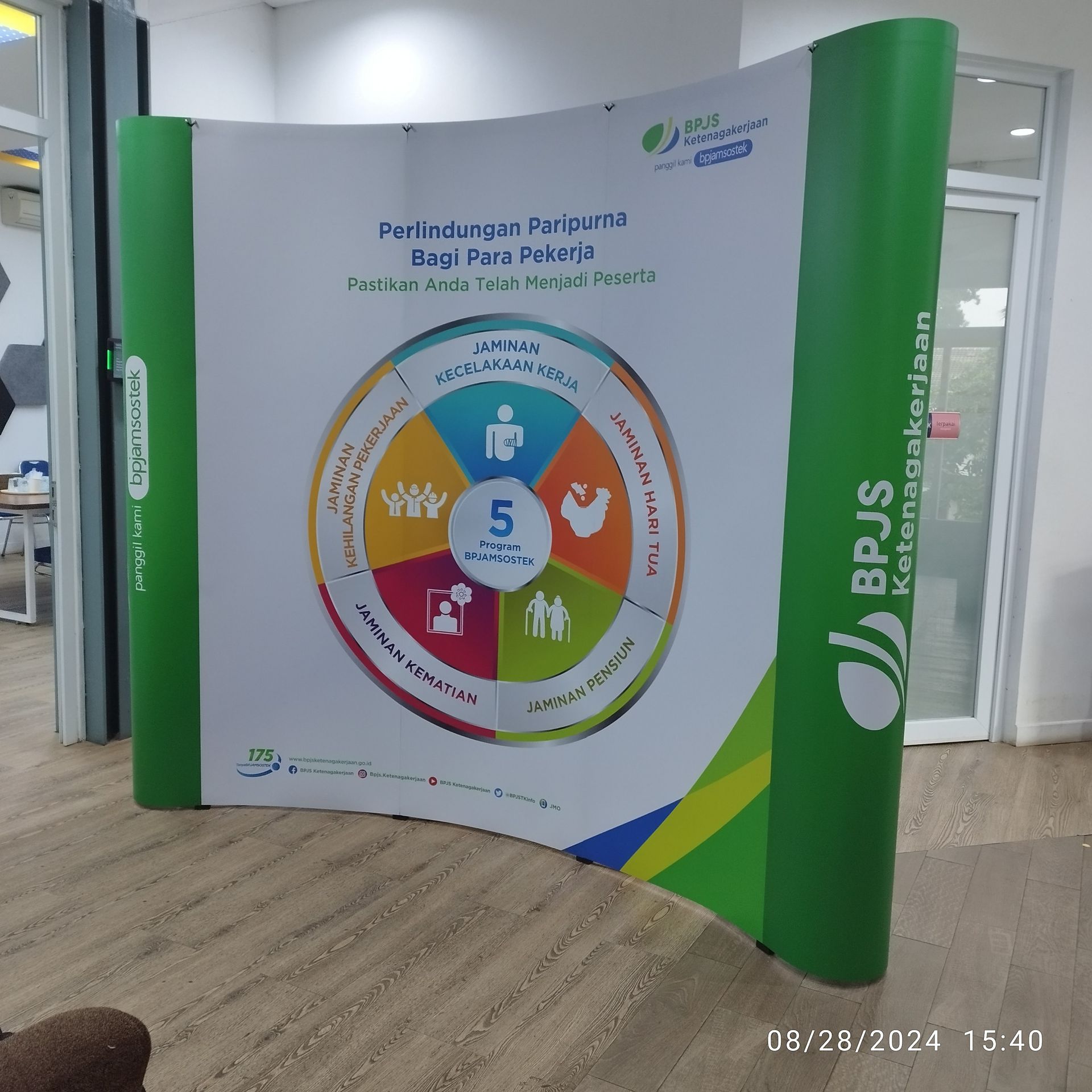 Pop Up Backwall merupakan perangkat promosi untuk menampilkan visual/grafis dalam ukuran besar (backdrop). Pop Up backwall menggunakan kerangka modul besi yang kokoh Semua model display Pop Up menggunakan sistem penahan dengan pin, palang dan pengikat magnet. Banner/visual yang ingin Anda tampilkan pun tak terganggu dan akan menjadi fokus utama perhatian. Setiap pembelian backwall Pop Up 3x3 Flat atau Curve Anda akan mendapatkan. Rangka Backwall - Magnetic bars - Soft case - 2 lampu sorot spotlight - Supporting feet (khusus untuk Pop Up Backwall Flat)