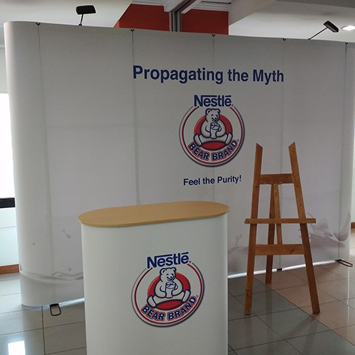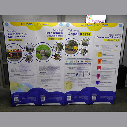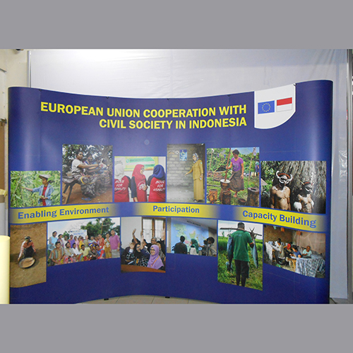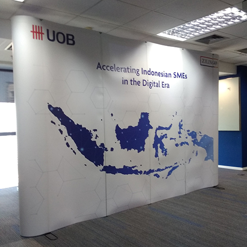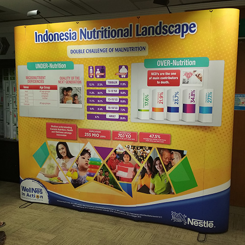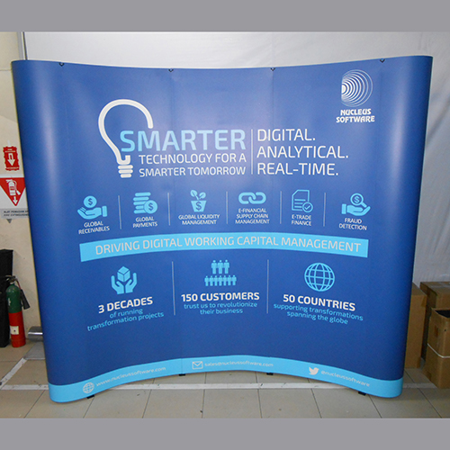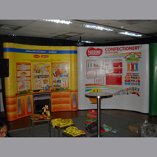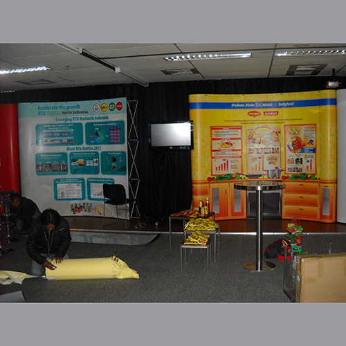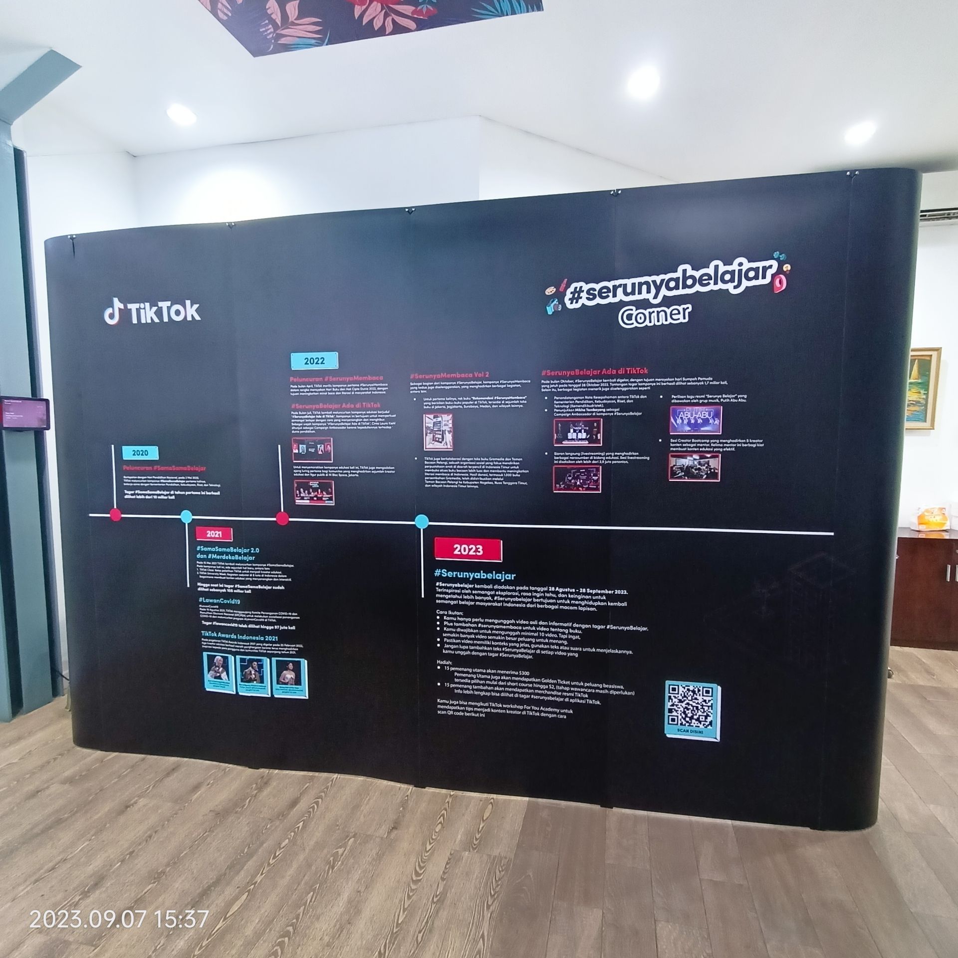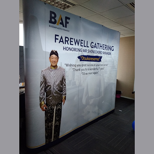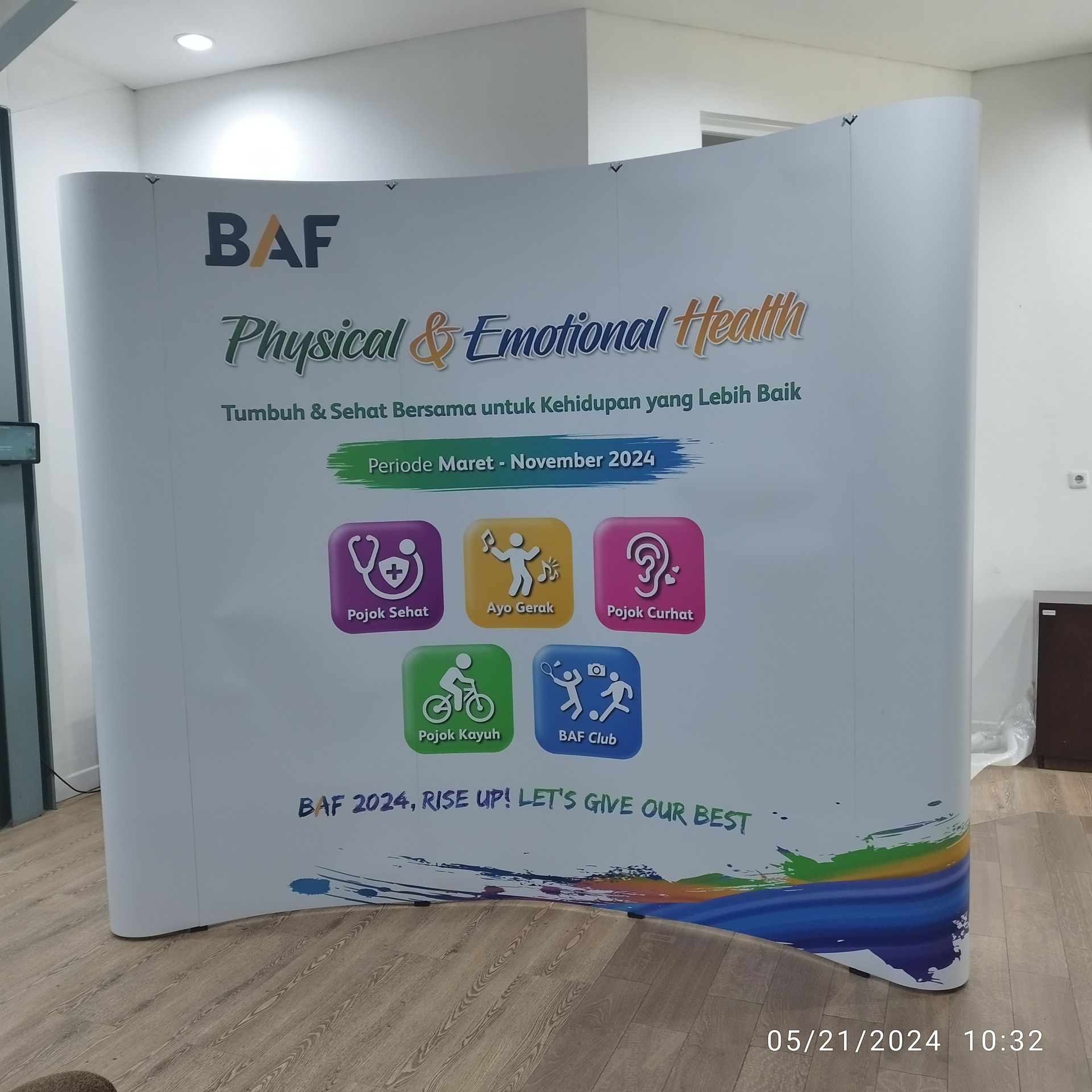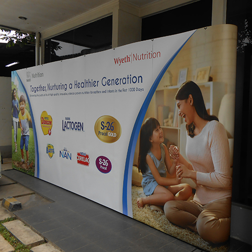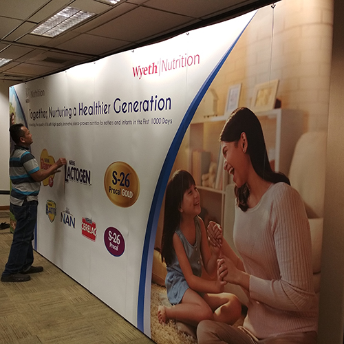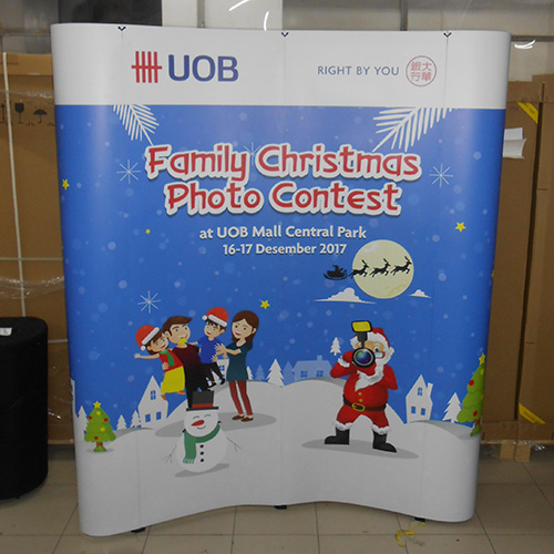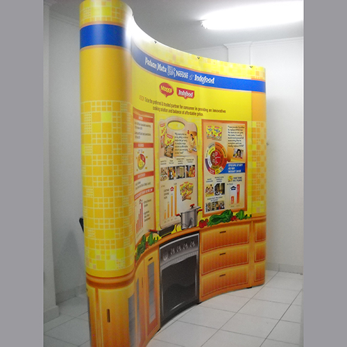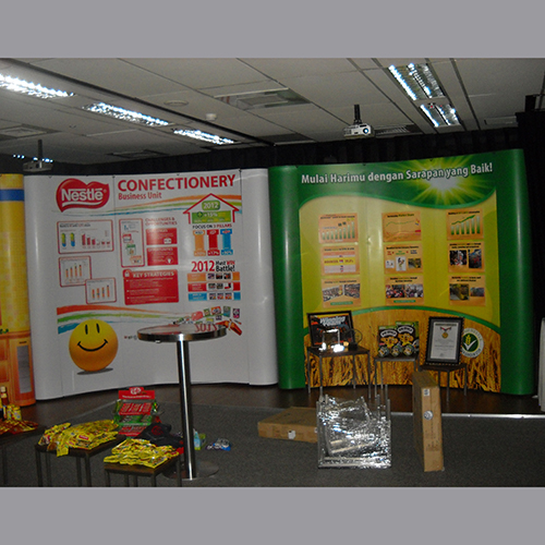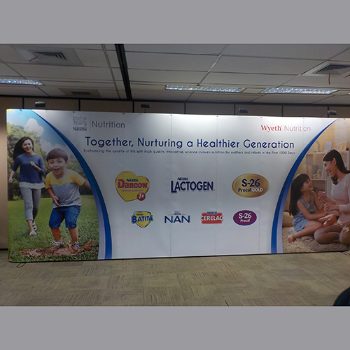 Pop Up Backwall merupakan perangkat promosi untuk menampilkan visual/grafis dalam ukuran besar (backdrop). Pop Up backwall menggunakan kerangka modul besi yang kokoh Semua model display Pop Up menggunakan sistem penahan dengan pin, palang dan pengikat magnet. Banner/visual yang ingin Anda tampilkan pun tak terganggu dan akan menjadi fokus utama perhatian. Setiap pembelian backwall Pop Up 3x3 Flat atau Curve Anda akan mendapatkan. Rangka Backwall - Magnetic bars - Soft case - 2 lampu sorot spotlight - Supporting feet (khusus untuk Pop Up Backwall Flat)