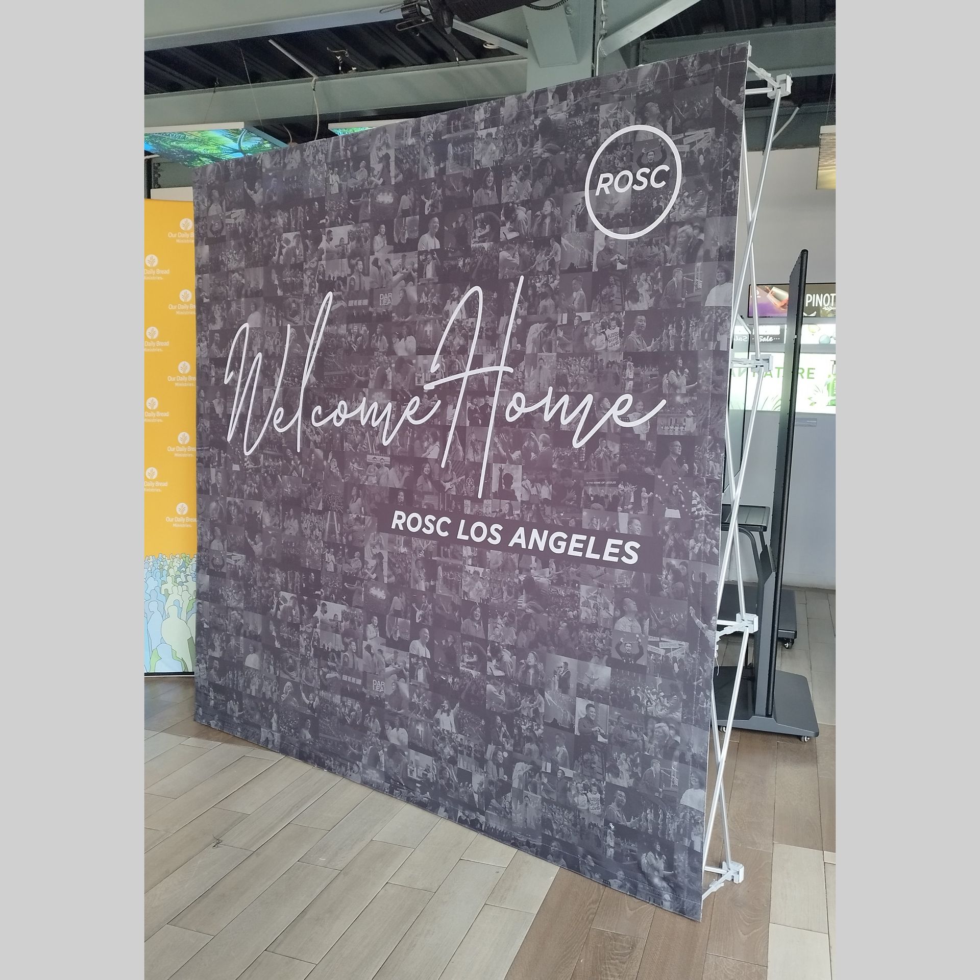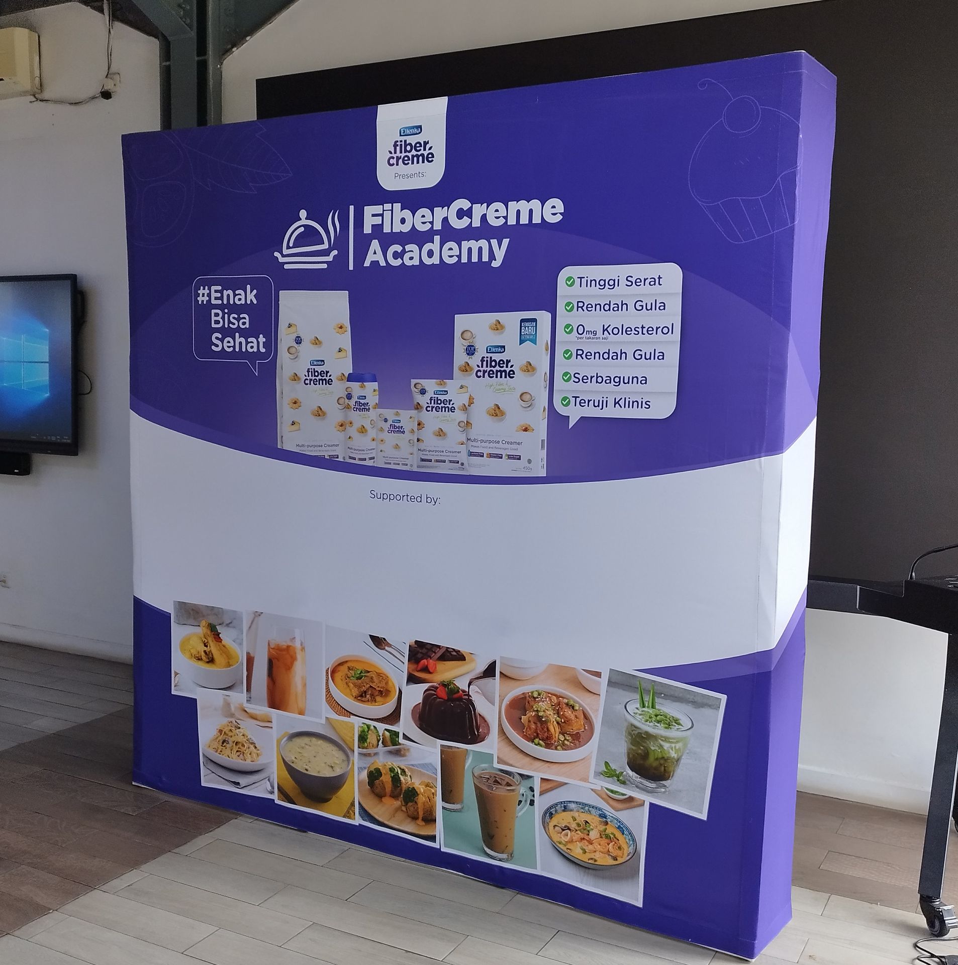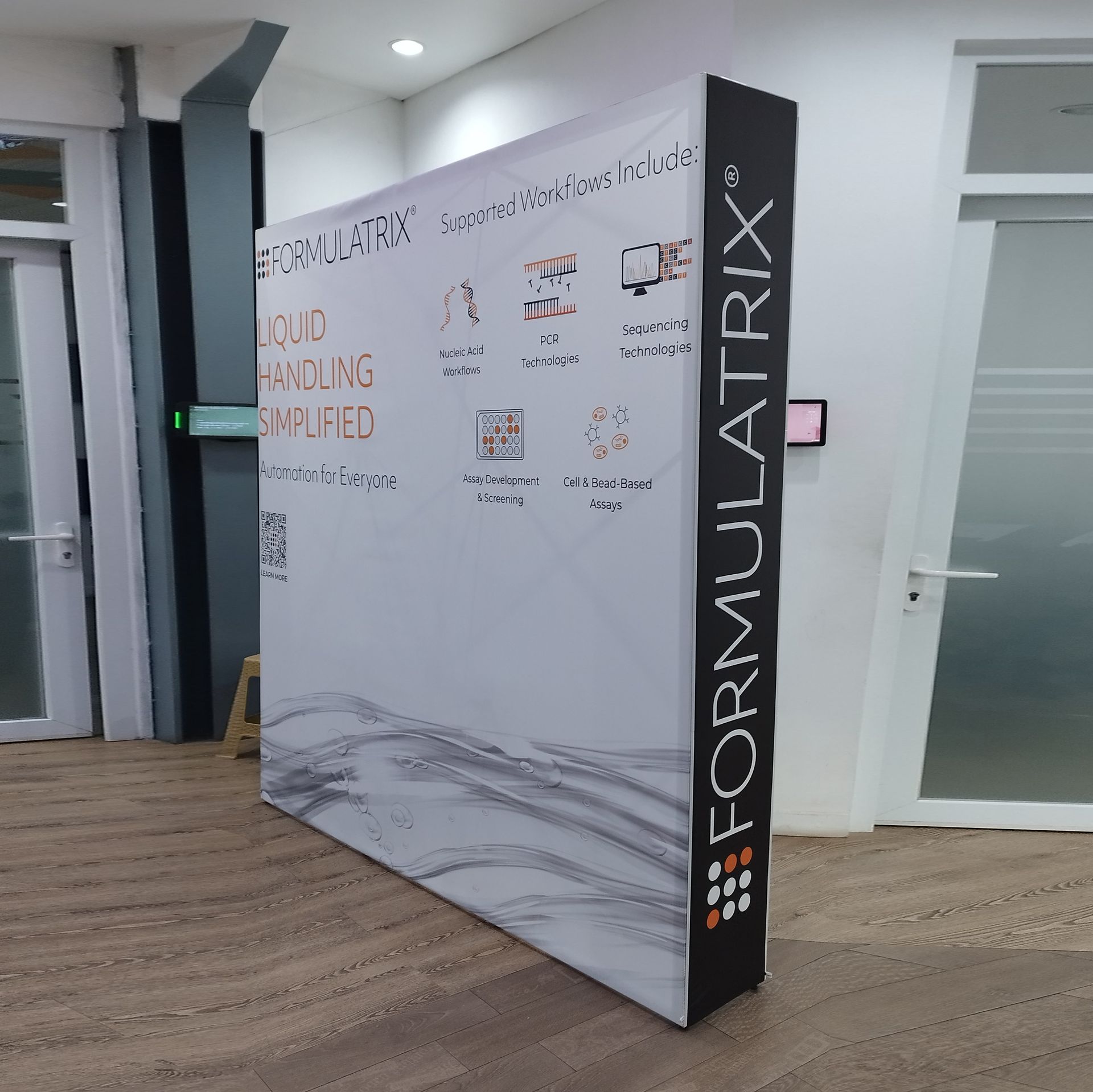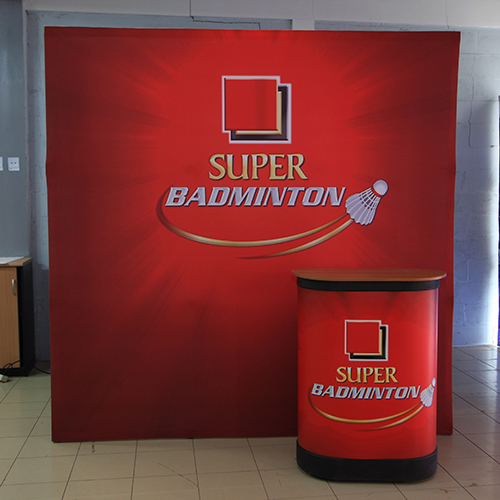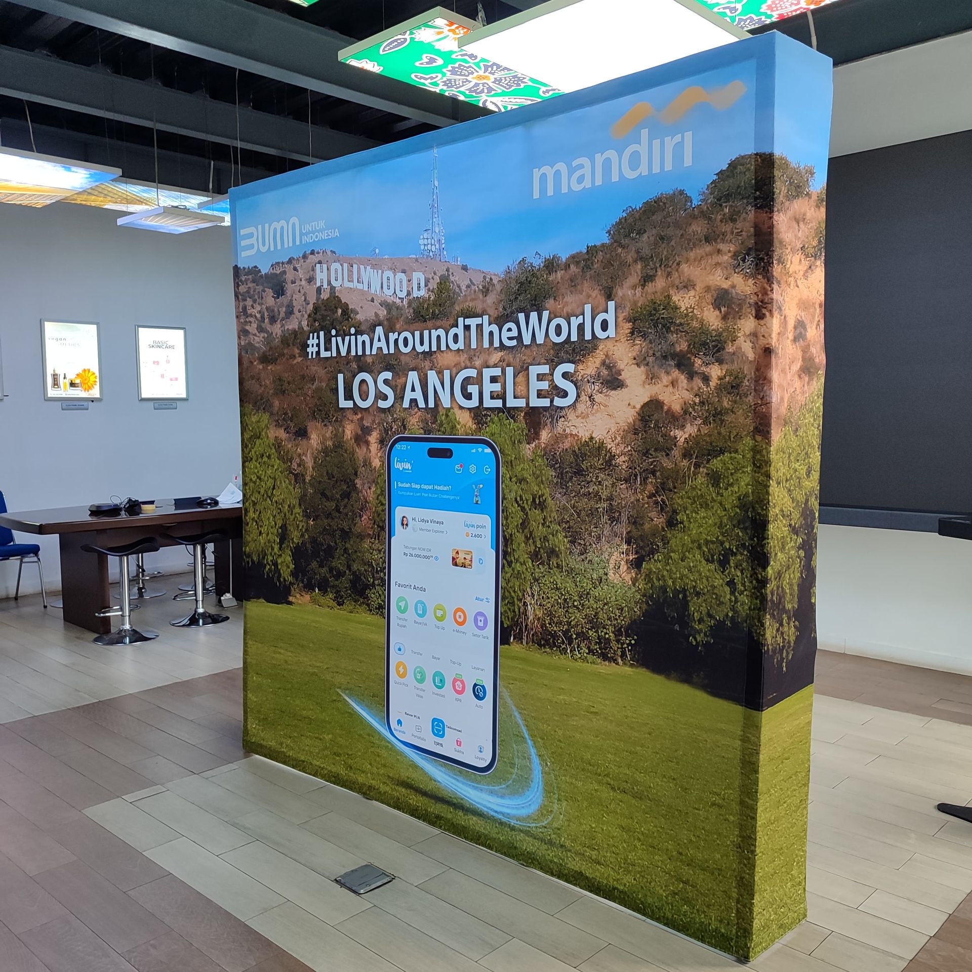 Pop Up Fabric Display merupakan perangkat portable display backwall dengan system collapsible untuk menampilkan graphic dalam ukuran besar (225 x 225 cm) yang di cetak pada media fabric textile sehingga graphic dapat ditampilkan secara penuh, rapi, dan tidak terpotong. Pop Up Fabric terbuat dari alumunium sehingga kokoh dan tak gampang jatuh selain itu Pop Up Fabric menggunakan sistem collapsible maka dapat dipasang dan dipindahkan dengan mudah tanpa perlu alat berat.