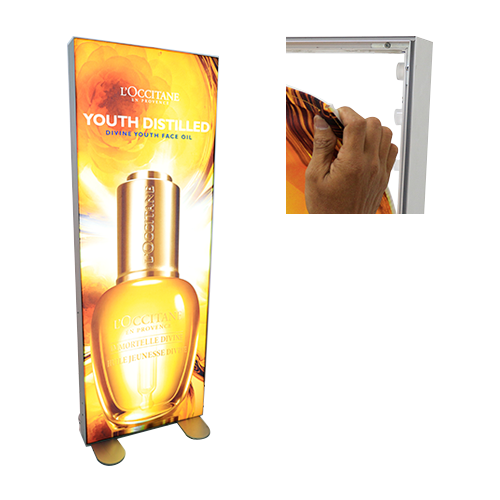 merupakan produk Alumunium Frame Series untuk menampilkan poster promosi / informasi toko, Mall, Bank, Gedung, dll. produk ini sangat mudah untuk mengganti gambar / poster / cetakan tanpa alat bantu dengan Snap / Click Sistem