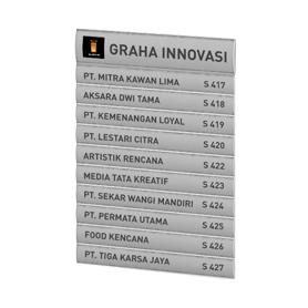 merupakan produk Alumunium Series / Acrylic untuk keperluan gedung sebagai Signage / Petunjuk ruangan / petunjuk arah, dll.