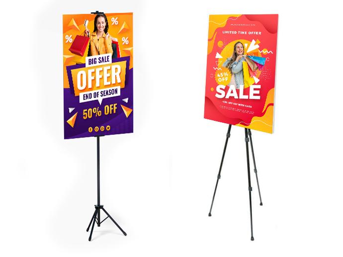 menggunakan Graphic Sticker mounting di KD Board sehingga tampilannya sangat beda dengan Roll Up dan X Banner yang sudah sangat pasaran saat ini. Mudah untuk mengganti Boardnya tanpa alat khusus, cukup sisipkan Graphic di tripodnya. Terdapat 2 Pilihan untuk Tripod :