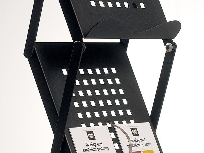 Dukungan kaki ekstra dan desain yang kokoh memungkinkan dudukan ini untuk menampung katalog berat serta brosur dan pamflet.