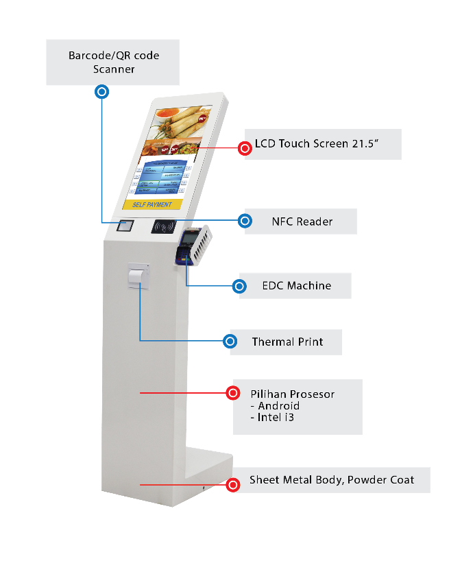 - Package Self Service Kiosk ( SSK ) Android with 21.5 Screen.