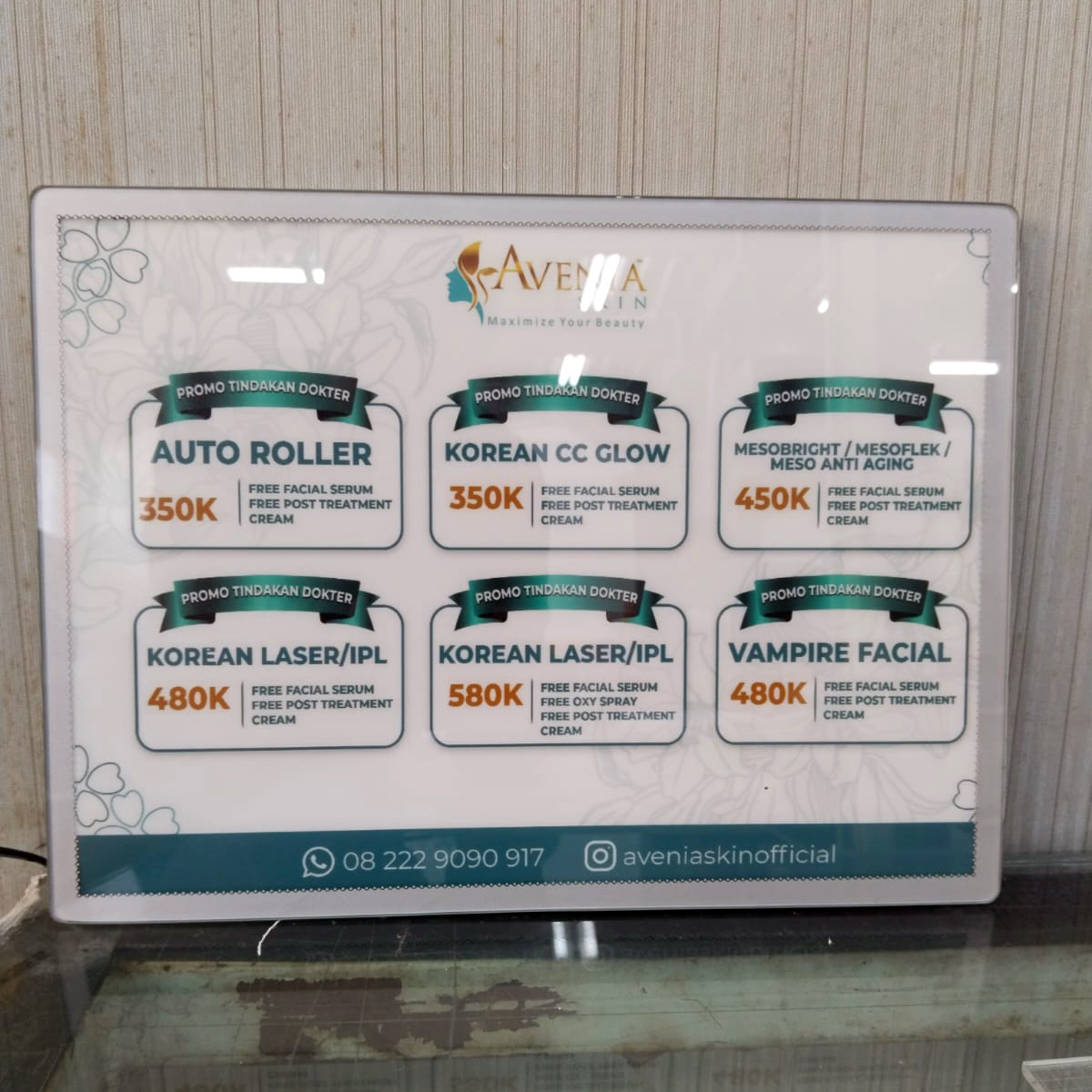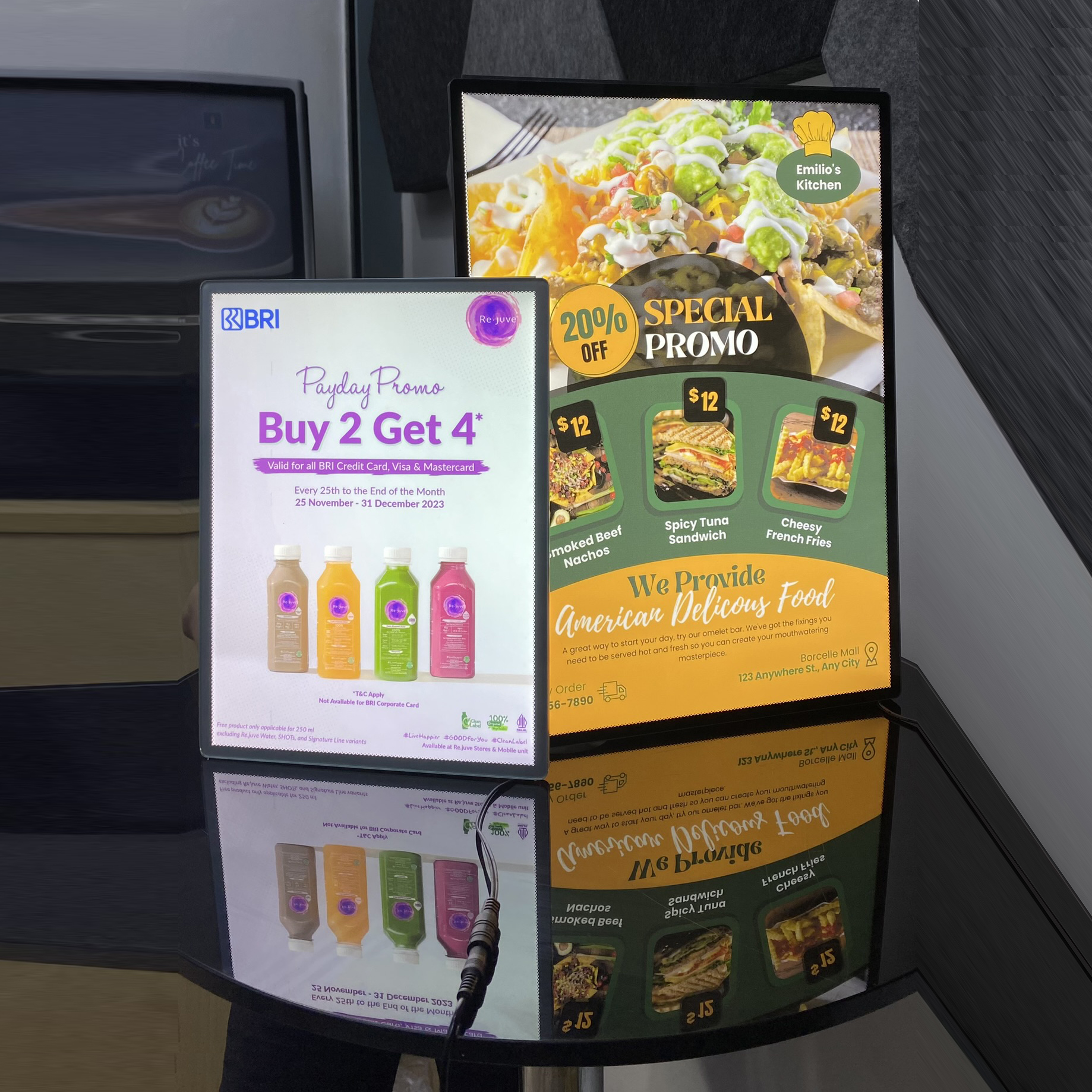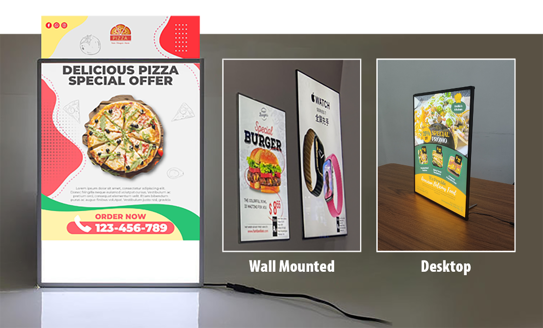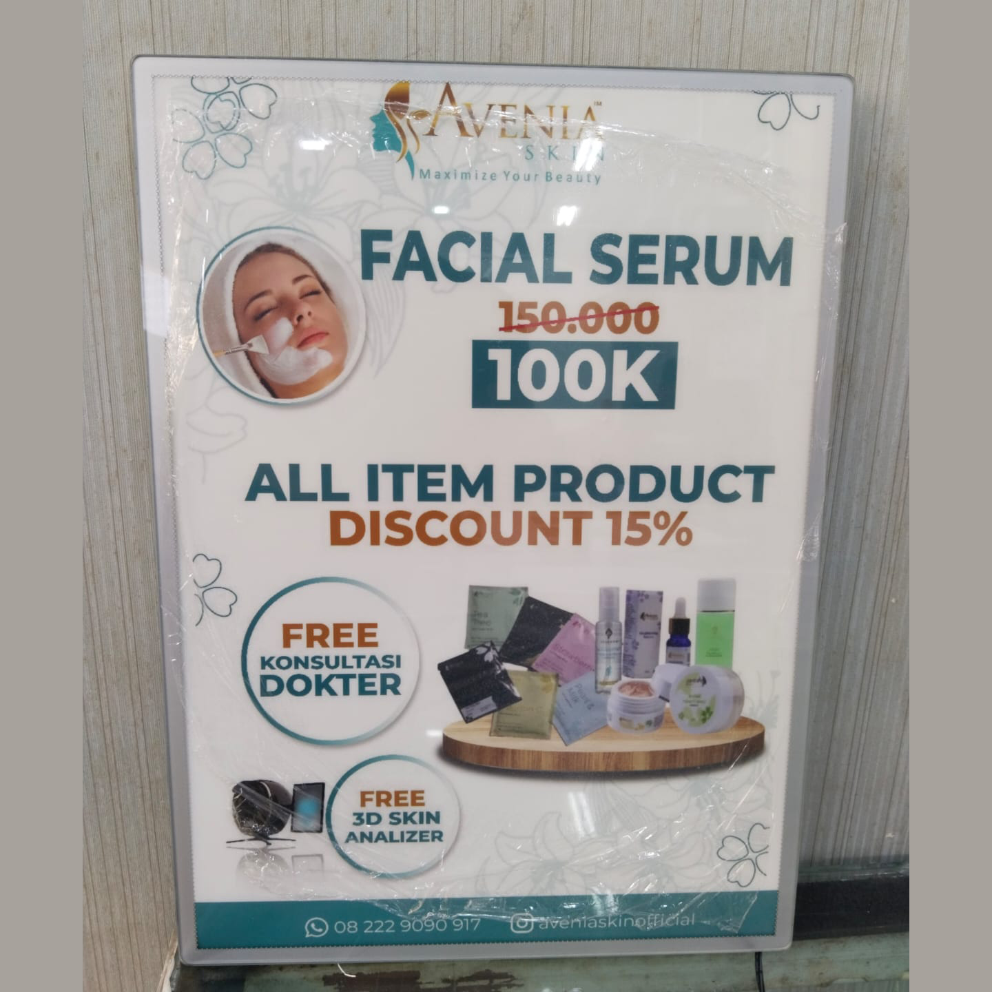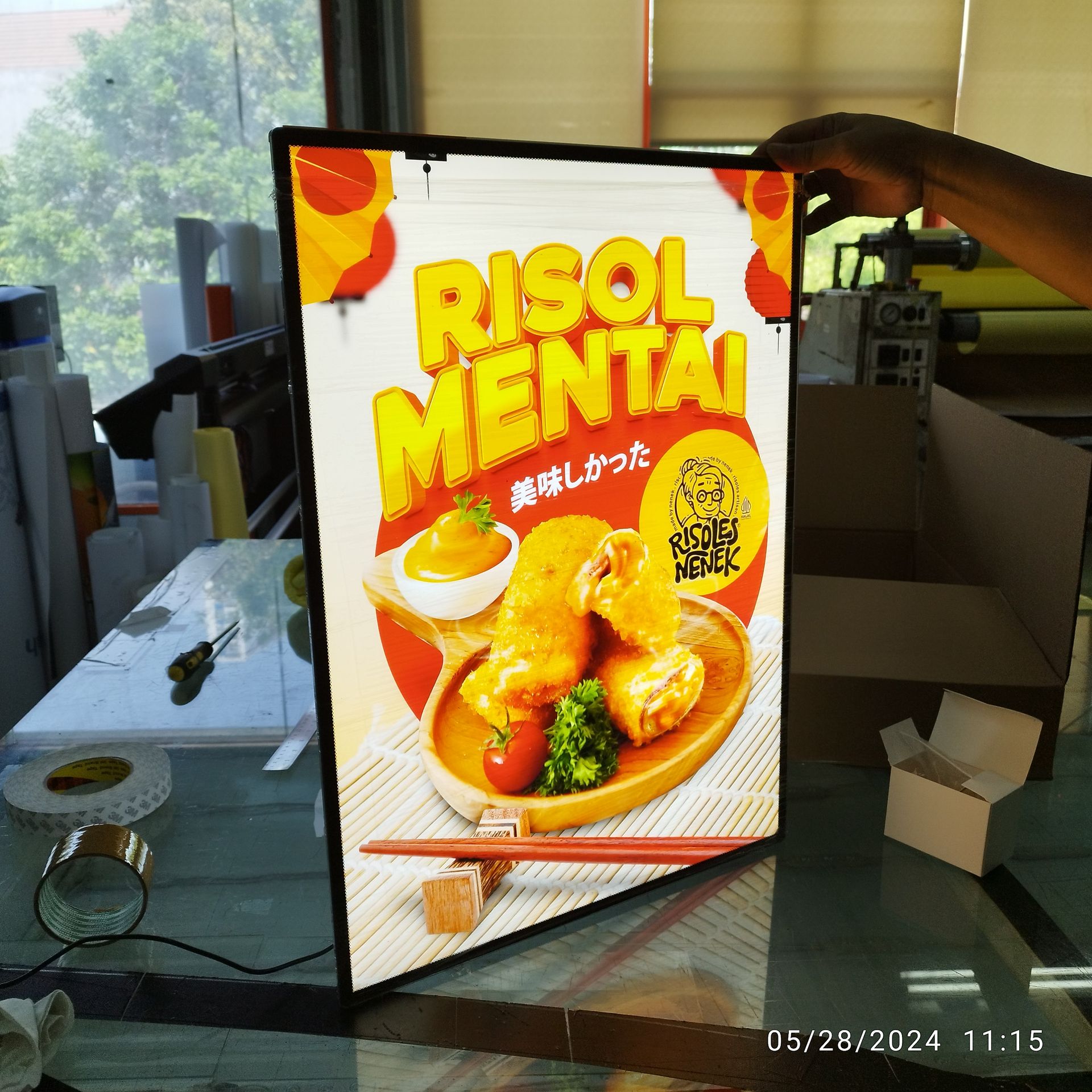 Superthin LED Lightbox merupakan Lightbox Series yang Tertipis (Tebal hanya 15mm) dengan tampilan modern dan elegan. Frame Lite Pad terbuat dari alumunium membuat bingkai menjadi kokoh, kuat dan tahan lama. Mudah mengganti gambar/graphic dengan disisipkan di samping / atas lightbox. Hemat energi dengan Lampu LED.