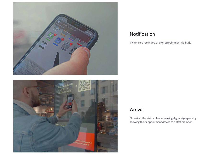 Flexible Appointment Booking seamlessly manages a mix of pre-booked appointments and walk-in tickets. Combine with Queue Management, Occupancy Control, People Counter, Omni Visit, and Digital Signage to create a full-featured visitor management solution.