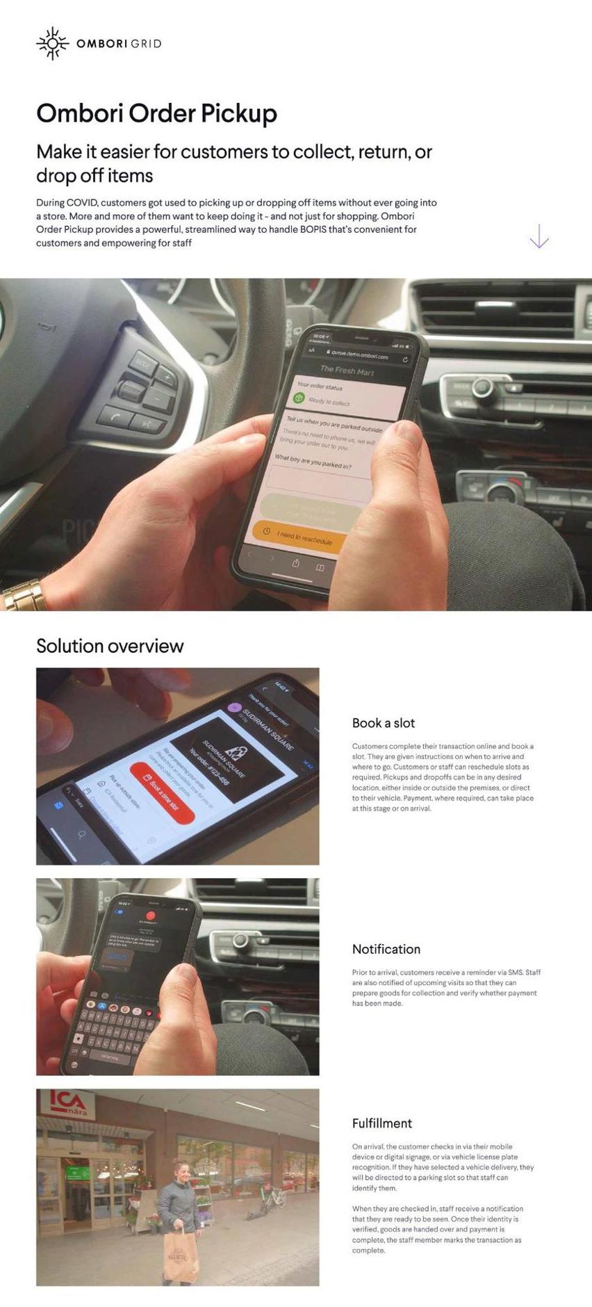 During COVID, customers got used to picking up or dropping off items without ever going into a store. More and more of them want to keep doing it - and not just for shopping. Ombori Order Pickup provides a powerful, streamlined way to handle BOPIS and curbside that’s convenient for customers and empowering for staff. Combine with Omni Visit, Queue Management, Occupancy Control, and Digital Signage to create a full-featured omnichannel fulfillment solution.